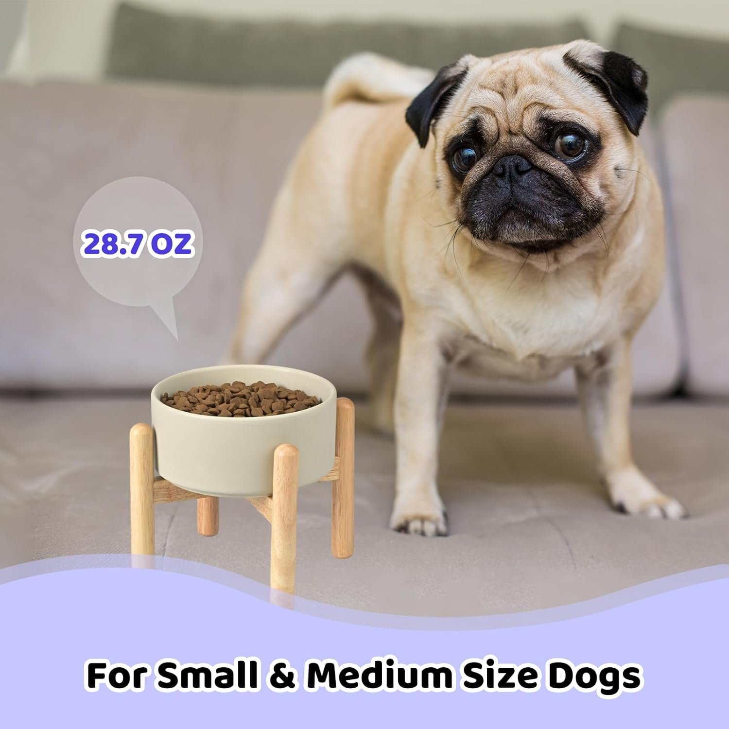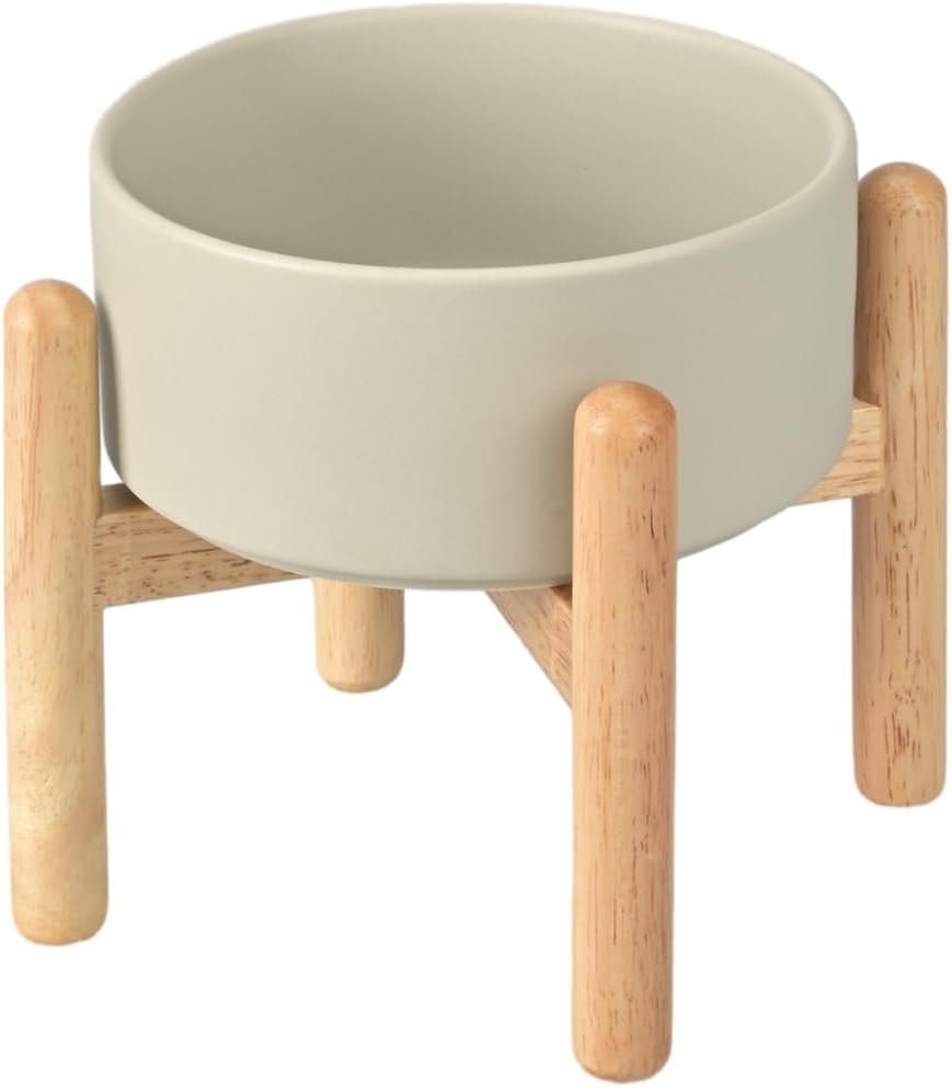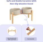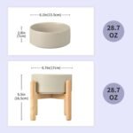 Spunkyjunky keramiek verhoogde hondenkommen met houten standaard verhoogde hondenkomvoedsel en water voor huisdieren voeder kom voor kleine en middelgrote hond (enkele 28,7 oz kom, grijs)