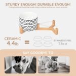 Double Bowl Design: Eén hondenkom voor voedsel en een voor water, elke keramische kattenkom heeft een unieke houten standaard, waardoor de afwas dichter bij uw huisdier wordt gebracht voor comfortabeler eten