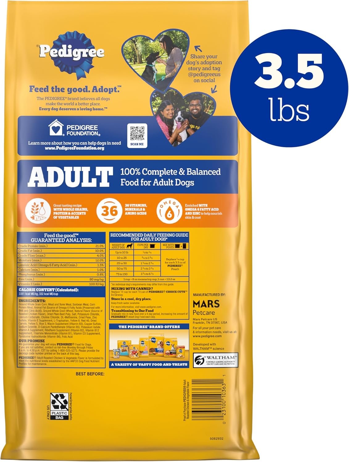 Bevat één (1) 3,5 lb. zak stamboom complete voeding volwassen droge hondenvoer, geroosterde kip en groentesmaak