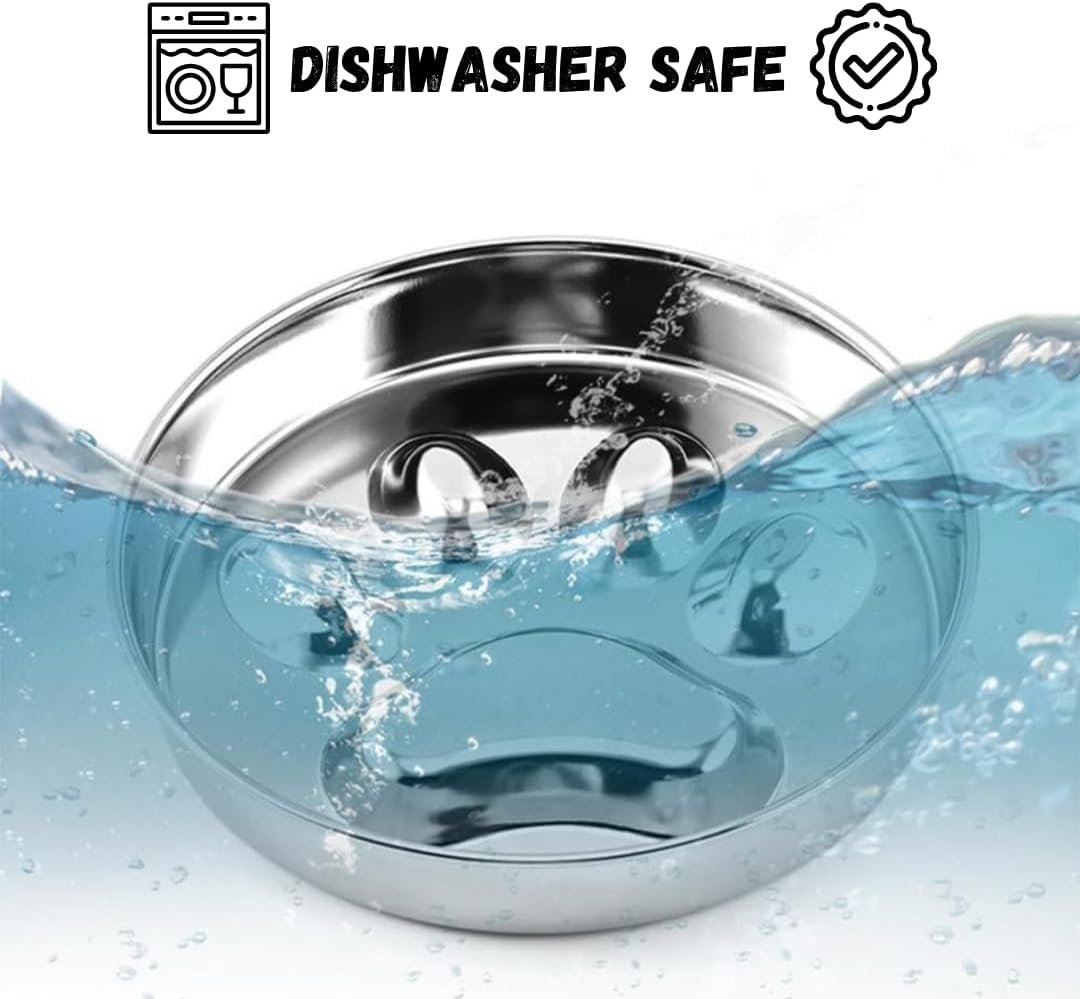 Onze roestvrijstalen langzame feederkom is gemakkelijk te reinigen, met de hand of in de vaatwasser