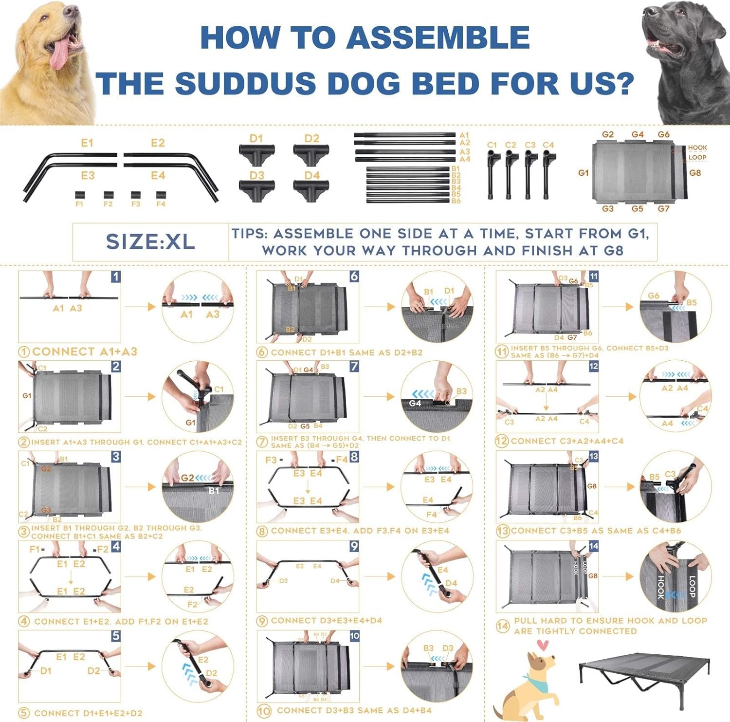 (Uitstekende after-sale service) Ontworpen met niet-slip rubberen kussens en anti-skid plastic accessoires, het Suddus verhoogde hondenbed biedt op alle mogelijke manieren bescherming. Geniet van een 24-uurs online service en 12 maanden garantie, inclusief gratis vervanging van plastic onderdelen en vervangende covers binnen een jaar.