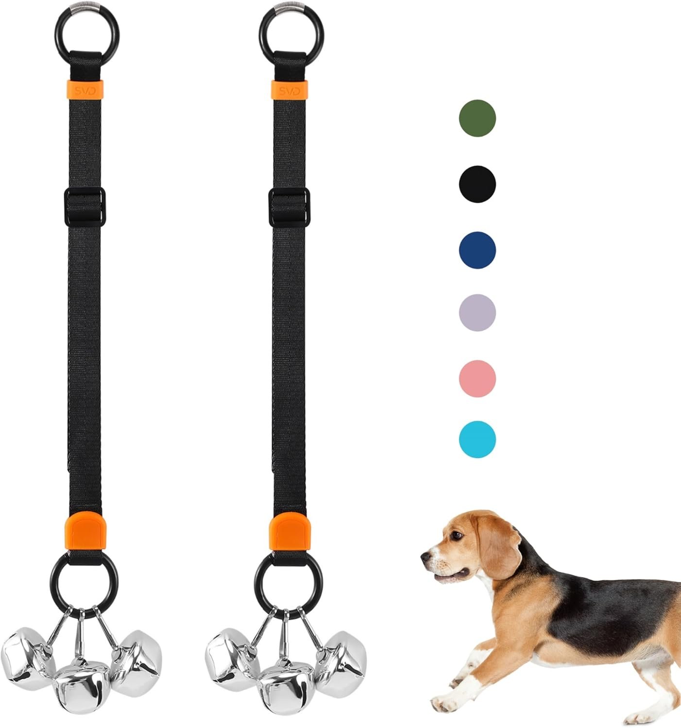 Svd.pet 2 verpakt hondendeurbellen om naar buiten te gaan voor zindelijkheidstraining, puppy hondenklokken met hangende ring bevestigd aan deurknop of overal bij de deur, hoogte verstelbare, luide jingle bells (zwart)
