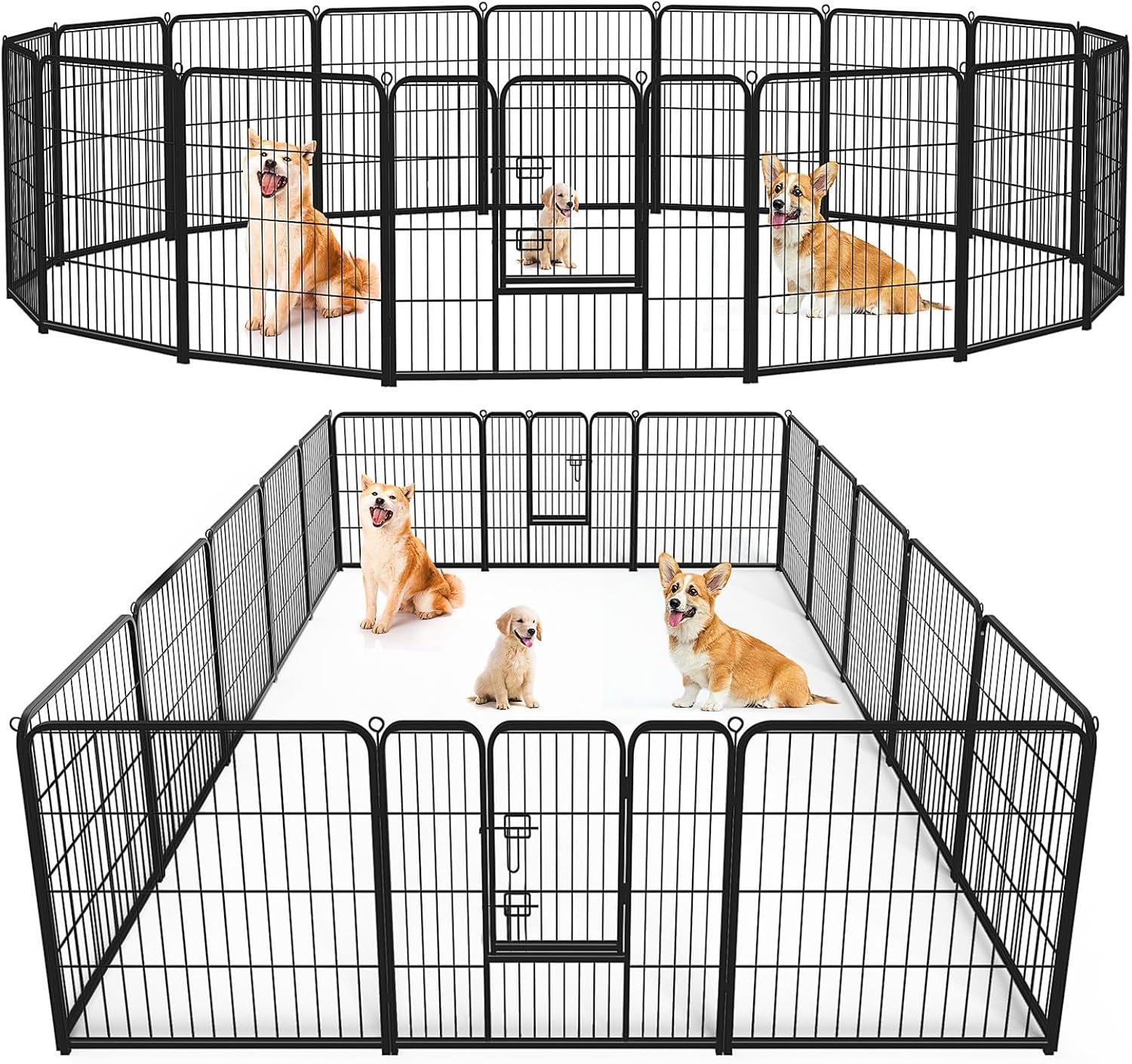 【Tailored Options for Every Pet】 Available in 8-panel and 16-panel, with 3 kind of heights: 24”, 32”, and 40”. Our diverse selection ensures a perfect fit for dogs of all sizes and accommodates various pets, such as kitten, cats, rabbits and so on, providing a reliable and comfortable space for all. And it’s easy to assemble this foldable metal dog pen according to the desired area of use.