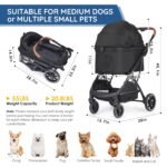 T5 Luxury Pet Stroller voor middelgrote hond onder 60 pond of 2 kleine honden en katten met 180 ̊ canopy, zonnedinten, opvouwbare hondenwagen voor meerdere huisdieren (zwart)