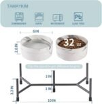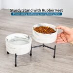 Tamaykim 32 oz keramische hondenkattenkommen met verhoogde metalen standaard, 6 inch porseleinen ronde voedsel en waterkom set, niet-slip Pet Pet Feeder kommen voor katten en honden, marmeren grijs, set van 2