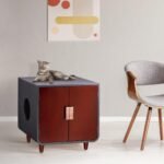 Moderne kattenbak: beschikt over een klassiek ontwerp uit het midden van de eeuw met een mokka walnootafwerking en zwarte accenten voor een moderne toevoeging aan elke ruimte.