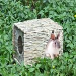 Vouw en verberg hut: breng een gevouwen geweven strohuis mee naar huis voor je harige vriend. Dit is een prachtig vierkante nestproduct dat je konijn graag zal kauwen, rusten of nestelen. Het huisje voegt plezier toe aan je spel met het konijn