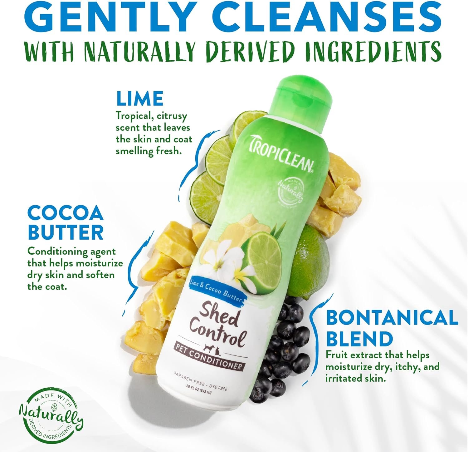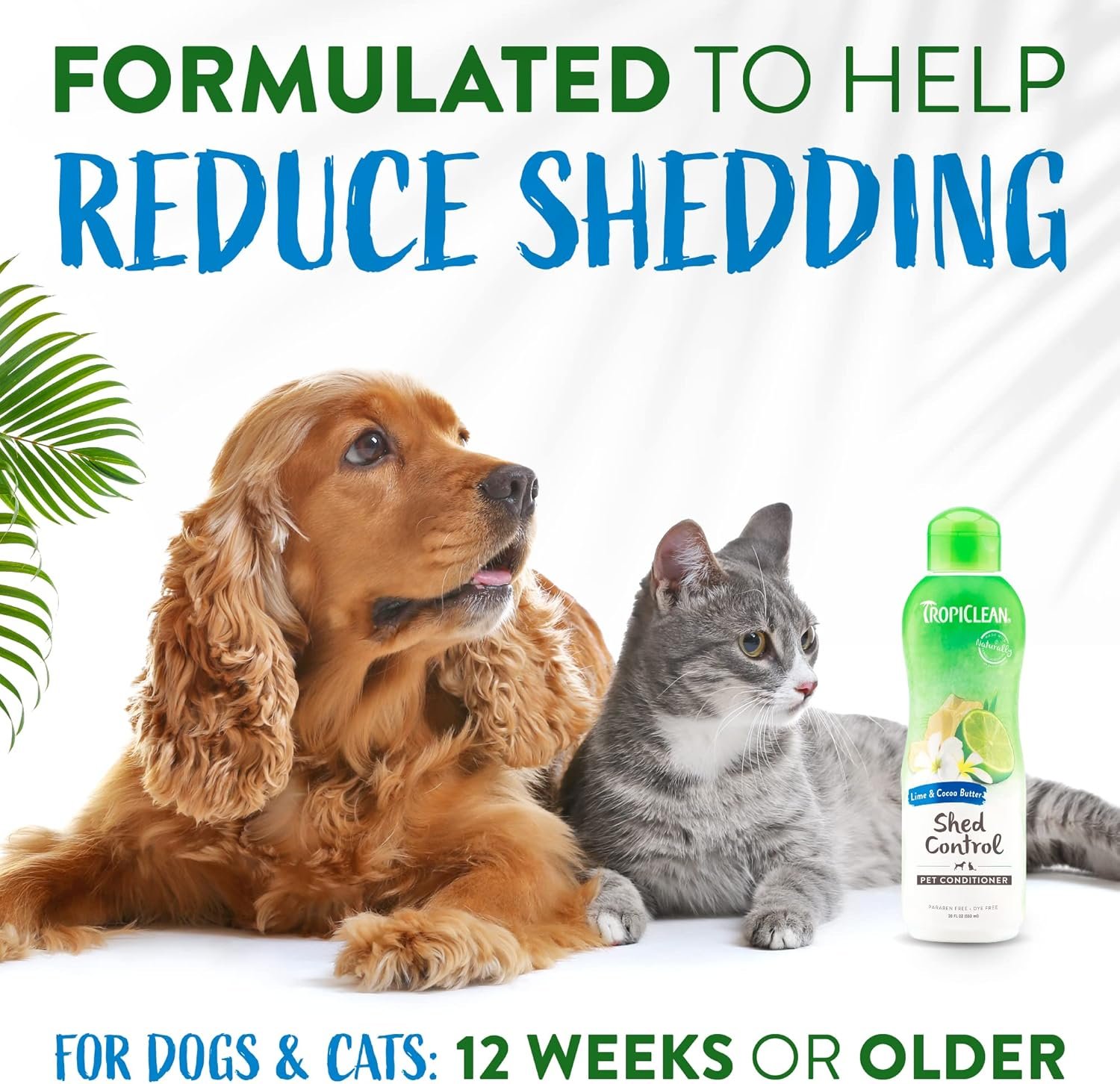 Tropiclean Deshedding Dog Conditioner, Cat, Puppy & Kitten Safe, vermindert en verzacht jas, limoen- en kokosgeur, gemaakt in de VS, 20 oz.