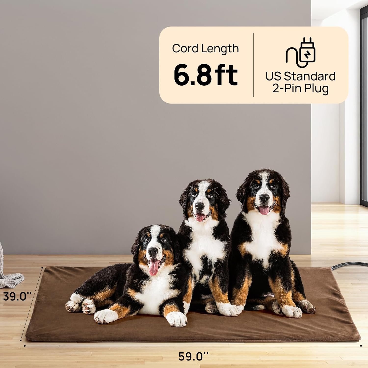 Turbro 59×39 ”XXX-Large PET-verwarmingskussen, elektrisch verwarmd hondenbed voor grote rassen, temperatuur- en timerregeling, anti-bijbite koord, ultra-soft en antislip deksel, gebruiksgebruik, MET gecertificeerd, bruin