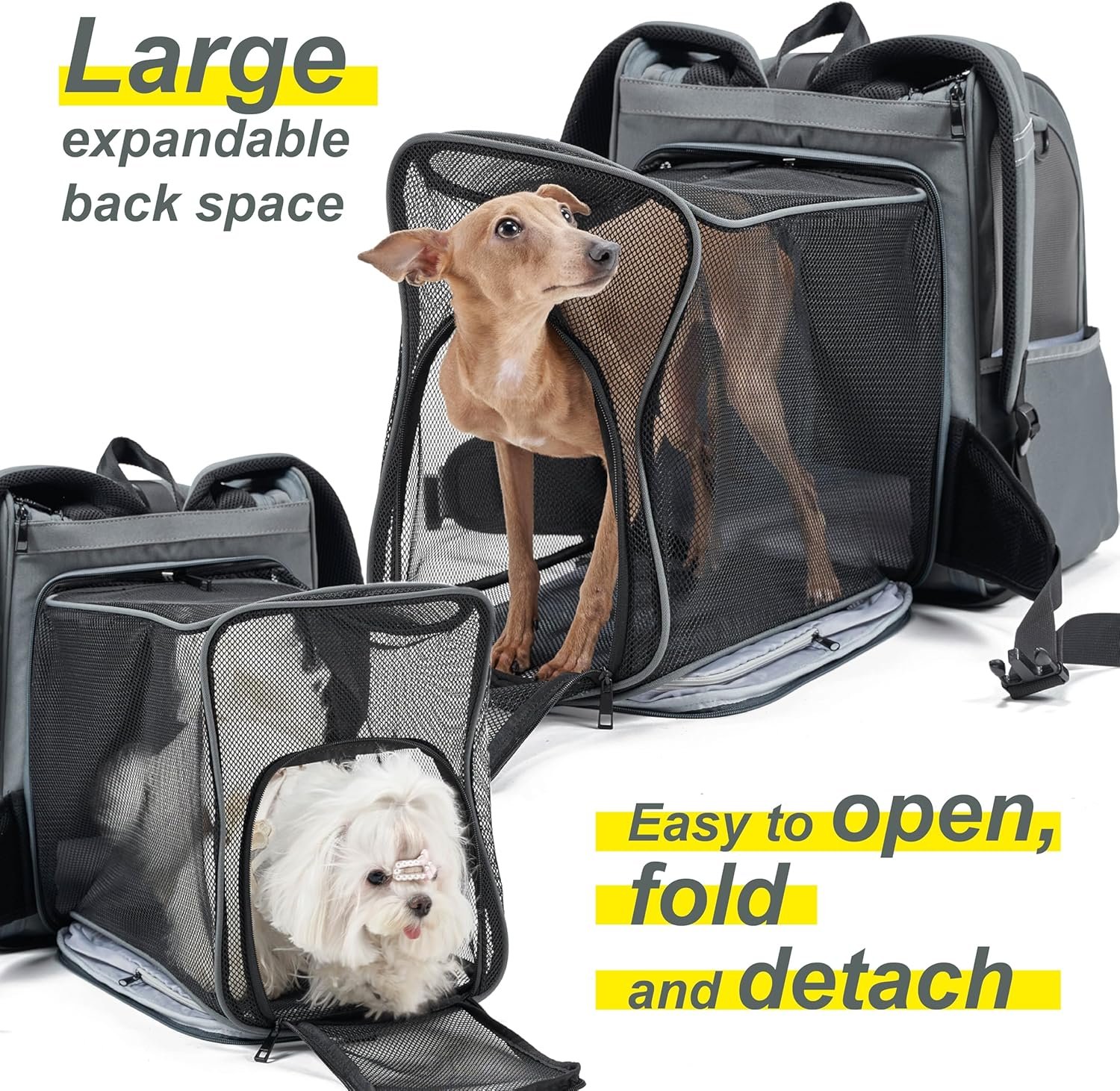 Uitbreidbare huisdierdrager, door luchtvaartmaatschappij goedgekeurde opvouwbare en afneembare rugzak, past 13 pond CAT & 11 pond kleine puppyhond, voor autorijden, kamperen en noodtransport en onderdak (grijs)