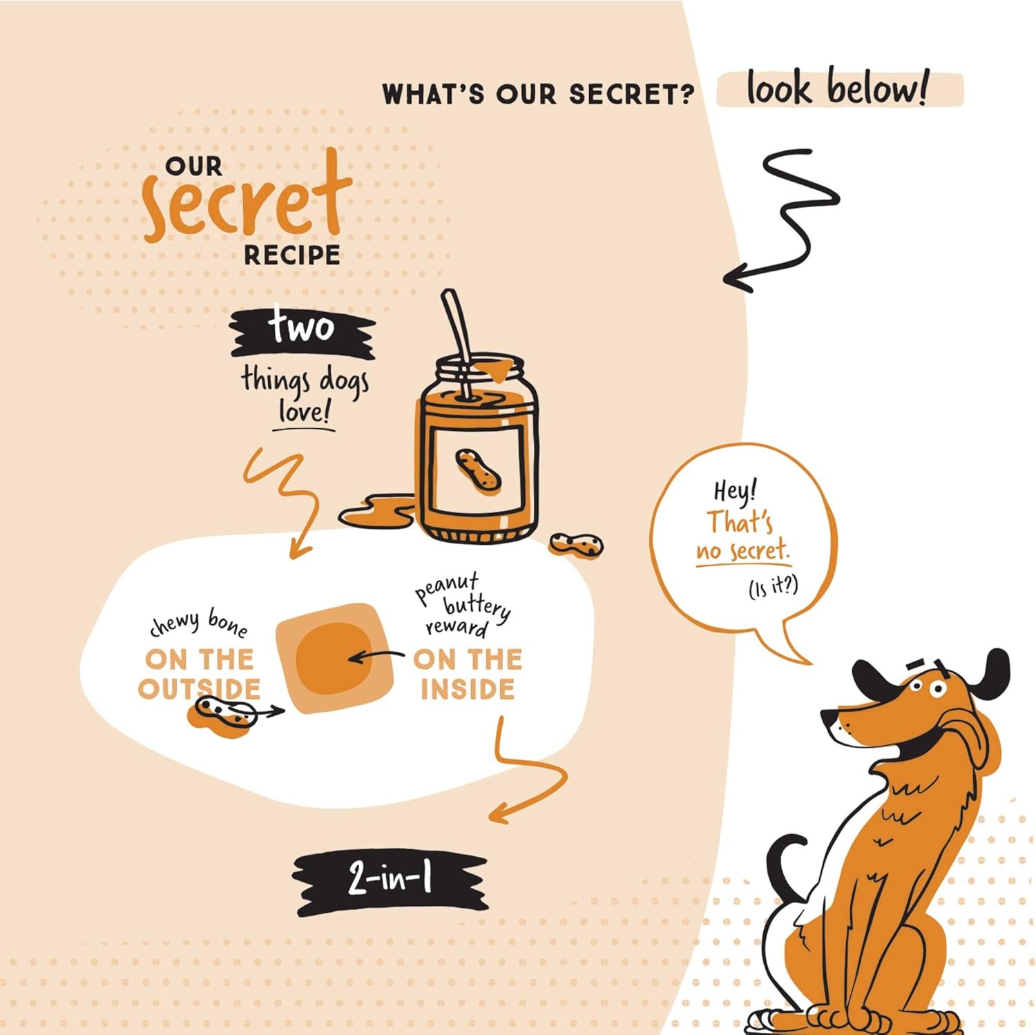Langdurige 2-in-1 Chew-ontworpen om mee te duren, waardoor uw hond een langdurige buitenlaag en een taaie smaakvol centrum krijgt voor uren van kauwplezier.