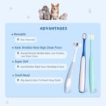 Drie verschillende vormen: komen met drie verschillende vormen van borstels om kieskeurige huisdieren te verzadigen; De 3-zijdige kopborstel kan voor / achter / zijzakken van hondentanden tegelijk, efficiënt en handig reinigen; Platte nano -borstelborstel bereikt gemakkelijk diepe tanden in de mond van het huisdier en 360 siliconen borstel schone tandvlees en tanden grondig zonder pijn