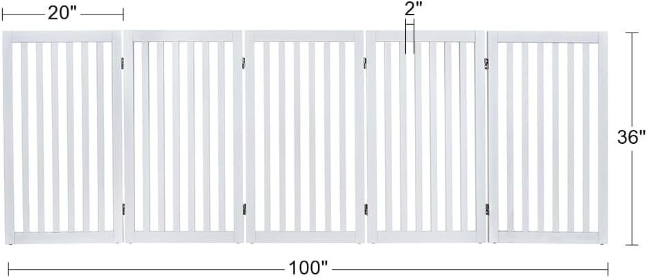 Unipaws 36 ”H vrijstaand huisdierpoort voor hond en kat, hoge houten hondenpoorten voor deuropening, trappen, hondenruimte, opvouwbare huisdierenhek voor het huis, uitbreidbare hondenbarrière, binnengebruik, wit, wit
