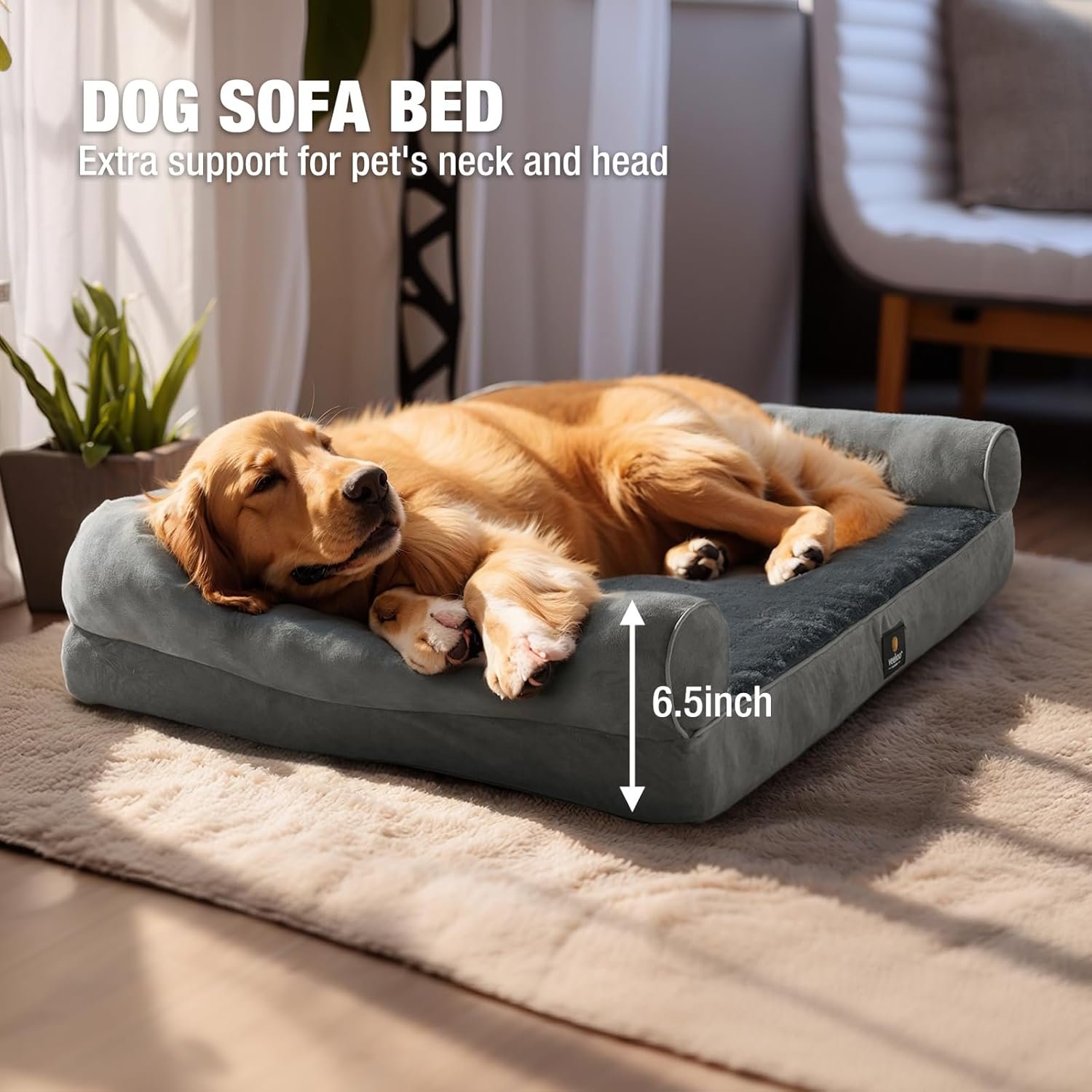 Veehoo orthopedische hondenbedden voor honden met grote grootte – xxl hondenbank met bolsters, huisdierbankbed met afneembare wasbare deksel en niet -slip bodem, donkergrijs