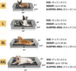 Beschikbaar in 4 maten voor honden van alle rassen. Het XXL -hondenbed voor grote honden is 47 “x 33” x 6,5 “(Bolster Hoogte: 3,5”, slaapgedeelte: 37,4 “x 28.3”) voor honden tot 120 lbs zoals Labrador Retrievers en Rottweiler; Als u niet zeker bent over de maat, raden we u aan één maat omhoog te gaan voor extra comfort en wiebelruimte.