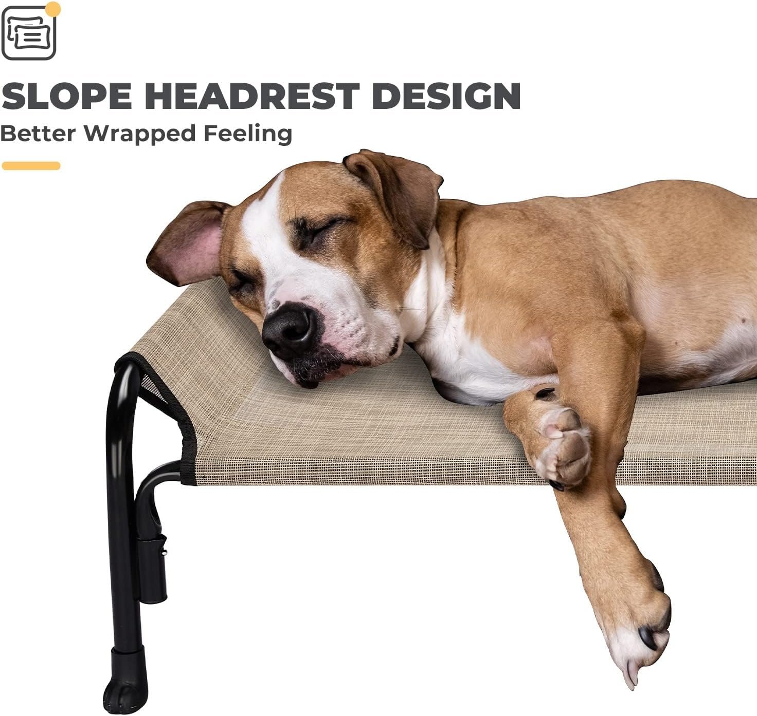 Veehoo verhoogd hondenbed, buiten verhoogde hondenbedjes bed voor grote honden, koelcamping verhoogd huisdierbed met helling hoofdsteun voor binnen- en buiten, wasbaar ademende, grote, beige koffie, CWC2204
