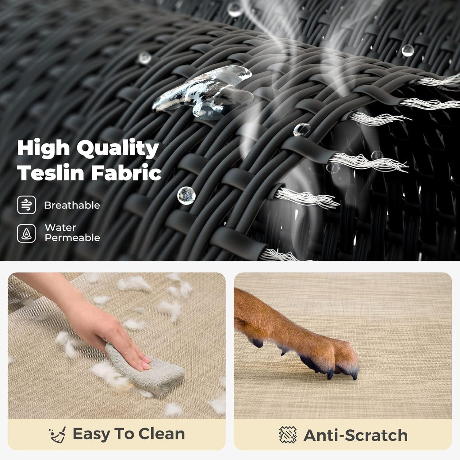 Blijf ooit koel! Gemaakt van textileen mesh -stof, laat de hondenwieg lucht stromen, waardoor uw huisdieren koel houden terwijl ze ontspannen in de hitte. Laat ook water of urine doorlopen, geen plassen gevormd. Bovendien heeft het Teslin-gaas warmtebestendigheid, stevig en ademend vermogen.
