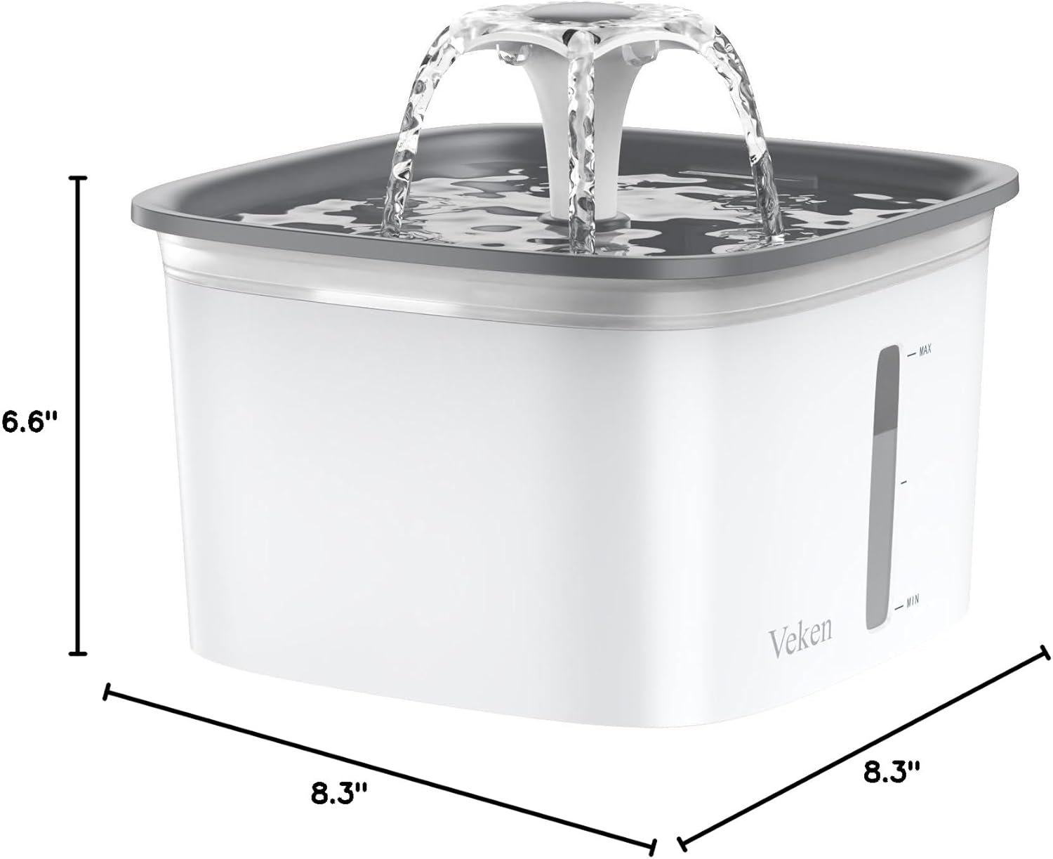 Veken 95oz/2.8L huisdierfontein, automatische kattenwaterfontein hondenwaterdispenser met vervangende filters voor katten, honden, meerdere huisdieren (grijs, plastic)