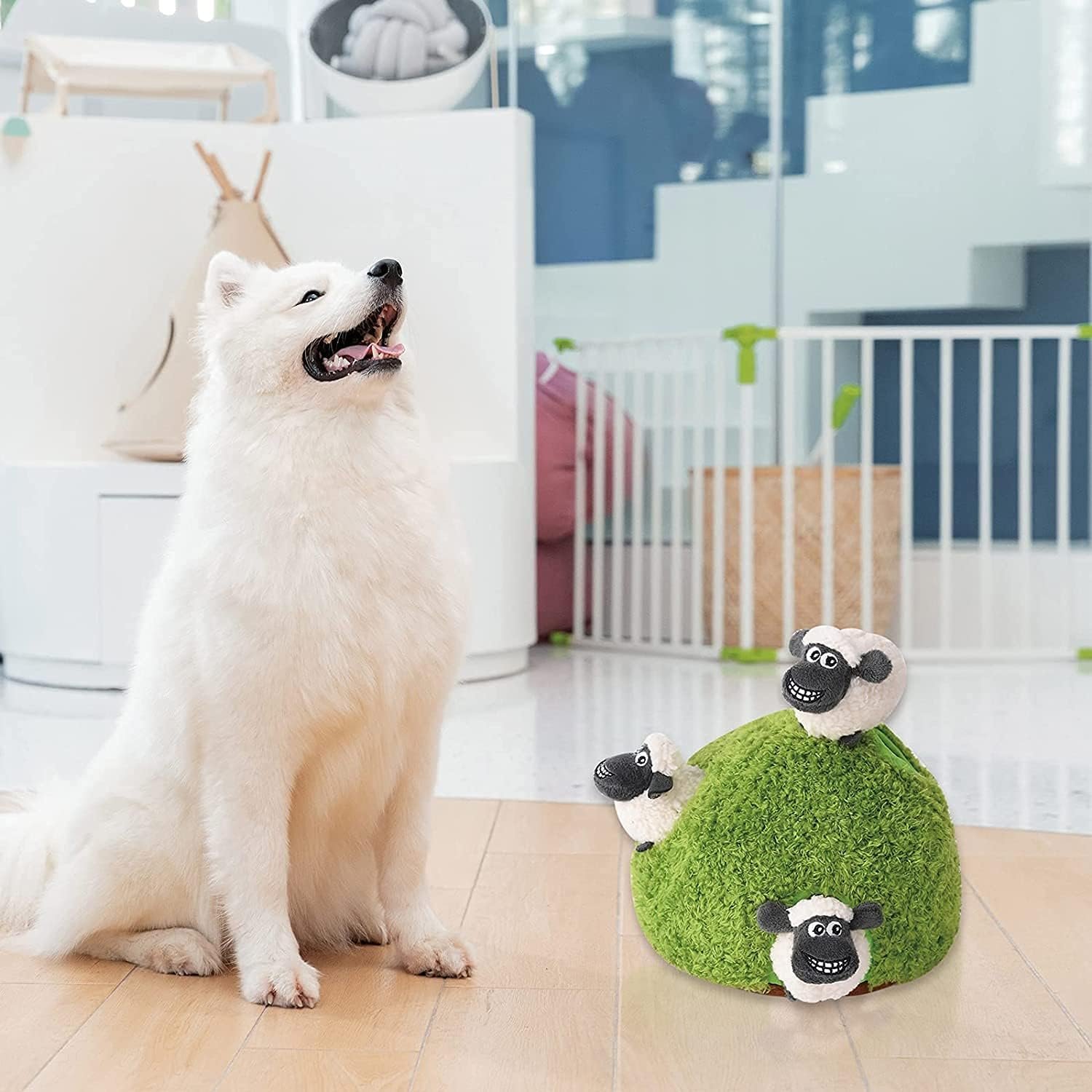 Verberg en zoek hondenpuzzel puppyspeelgoed, interactieve piepende pluche, gevuld speelgoed voor honden, klein formaat (schapen, panda, bosdieren) (schapen)