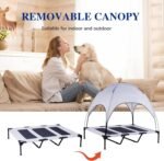 Verhoogd hondenbed met verwijderbare luifel, 48-inch waterdichte verhoogde huisdierenbedje, draagbaar buitenhondenbed met extra draagtas, koelluifel voor grote honden (lichtgrijs)