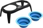 Gemakkelijke opslag en reizen – Deze kat- of hondenvoerstandaard met afneembare benen en twee verwijderbare, opvouwbare siliconenkommen neemt minimale opslagruimte in beslag wanneer ze niet in gebruik zijn, en biedt ook een compact, draagbaar voedingssysteem tijdens het reizen met uw hond of kat.