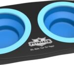 Verhoogde collectie voor huisdierenkommen met niet-slipstandaard voor honden en katten verwijderbaar en opvouwbare siliconenvoeder voor voedsel en water- 16 oz elk door petmaker (roze), blauw