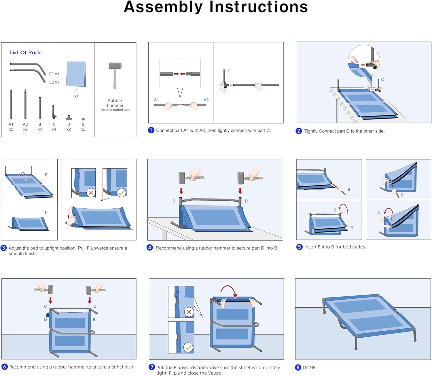 Bezorgd over het instorten van bed? Ons product beschikt over robuuste ondersteuning door de stalen buizen en Teslin -stof. Elk bed wordt geleverd met extra versterkingen, waardoor stabiliteit zorgt die zelfs de zwaarste belastingen kan verdragen.