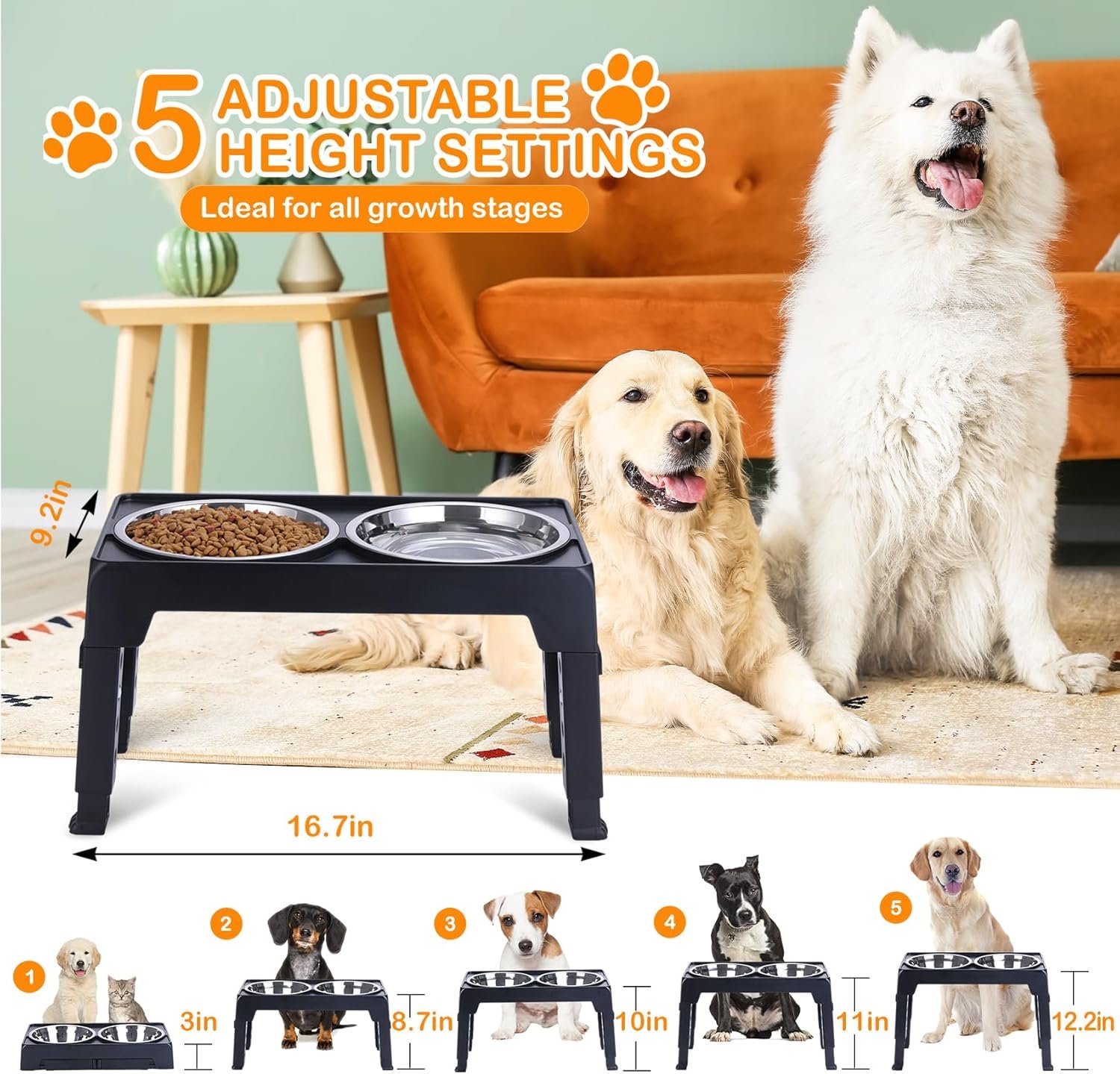 Verhoogde hondenkommen, verhoogde hondenkom met 2 roestvrijstalen hondenvoerkommen, hondenkommen staan passen aan in 5 hoogten 2,95 “, 8,46”, 9,65 “, 10.82”, 12.01 “voor kleine middelgrote grote hondenkatten, zwart