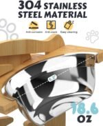 Stevig en gemakkelijk schoon te maken: de verhoogde hondenkom is duurzaam en geurvrij. Het wordt geleverd met twee roestvrijstalen kommen, elk met een 6-inch binnendiameter, geschikt voor verschillende soorten voedsel en water. De kommen zijn vaatwasmachineveilig voor eenvoudige reiniging. Er moet worden opgemerkt dat onze hondenkommen niet lang in contact kunnen zijn met water. Probeer na het reinigen het resterende water op het oppervlak van de hondenkom af te vegen.