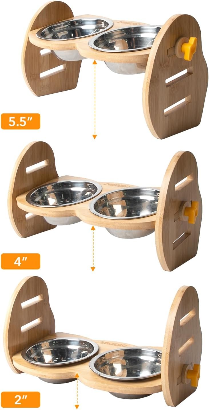 Verstelbare hoogte: dit verhoogde hondenschotelrek is flexibel en in hoogte verstelbaar, drie verstelbare hoogten 1,5 inch / 3,5 inch / 5,5 inch om te voldoen aan de behoeften van honden van verschillende leeftijden. Laat verhoogde hondenkommen groeien met uw huisdier in verschillende groeifasen.