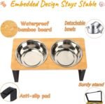 ????【 Pet veilig materiaal】: De kattenkommen zijn gemaakt van premium SUS 316 Food-grade roestvrijstalen kommen die roestbestendig en verwijderbaar zijn. En de natuurlijke bamboehouder is bedekt met gecertificeerde PET Safe Varnish, die waterdicht en geurloos is. Het is gepolijst om doorneloos te zijn, dus het zal uw huisdier niet schaden.