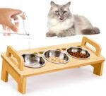 Verhoogde kattenvoedselschaal, 3 roestvrijstalen verhoogde kattenkommen met standaard, 15 ° gekantelde kattenkom voor binnenkatten, kattenvoer en waterkom, anti -bromitting, snorhaarvermoeidheid en vaatwasmachinebestrijding – natuurlijk