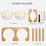 Verhoogde keramische hondenkommen, porselein verhoogde hondenkom met antislipstandaard, voedingsgerechten voor huisdieren voor middelgrote honden, petwaterkom ingesteld voor voedsel en water (6,3 “Tall-28oz-Cream wit)