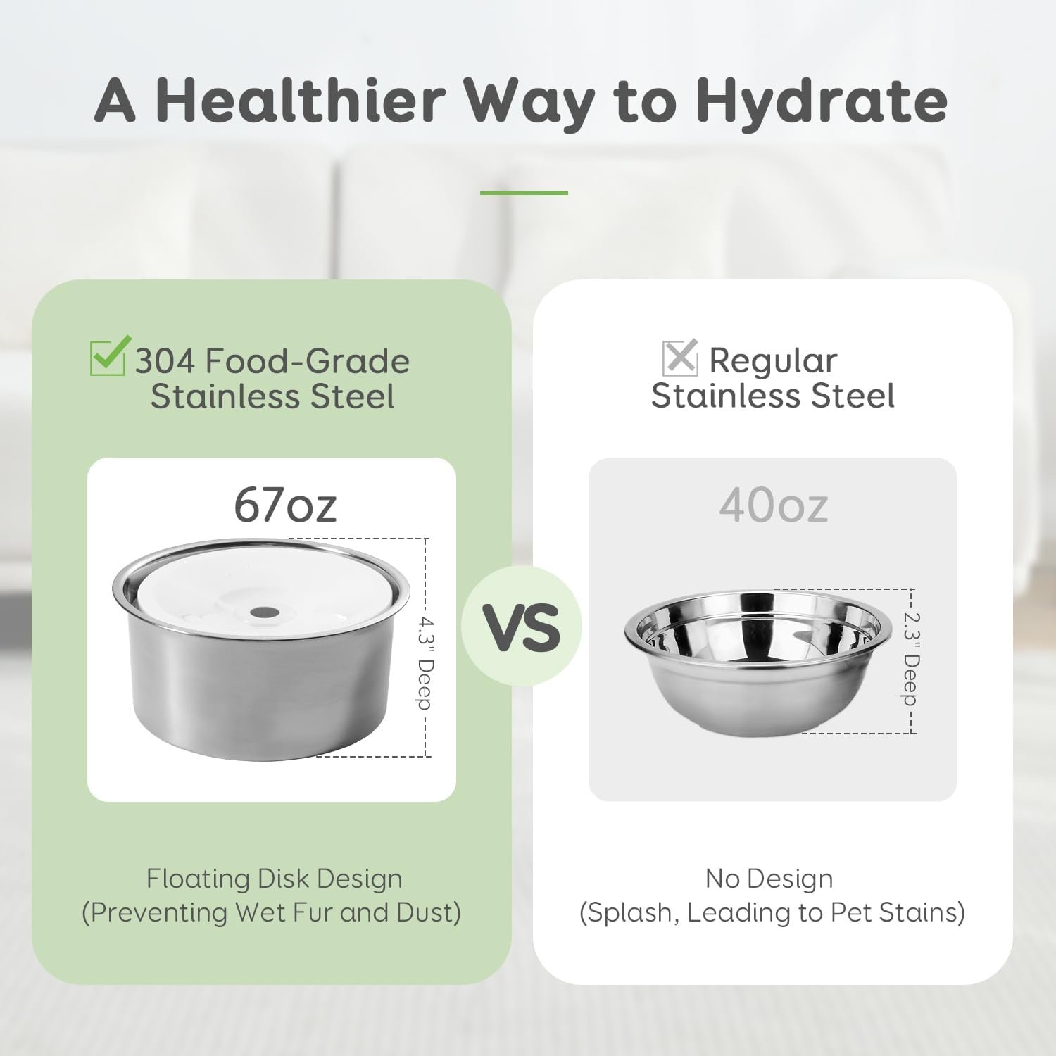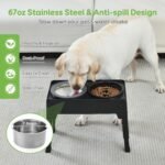 67 oz niet-slip 304 roestvrijstalen waterkom: hondenkomstandaard omvat een 304 voedsel van roestvrijstalen hondenwaterkom van 304 met een zelfverstelbare drijvende schijf. Eenmaal aangeraakt door de tong van de hond, zal het zinken om overloop te voorkomen en altijd een geschikt waterniveau te behouden. Uw hond zal drinken zonder morsen of spatten, zijn vacht en vloer droog en glanzend houden