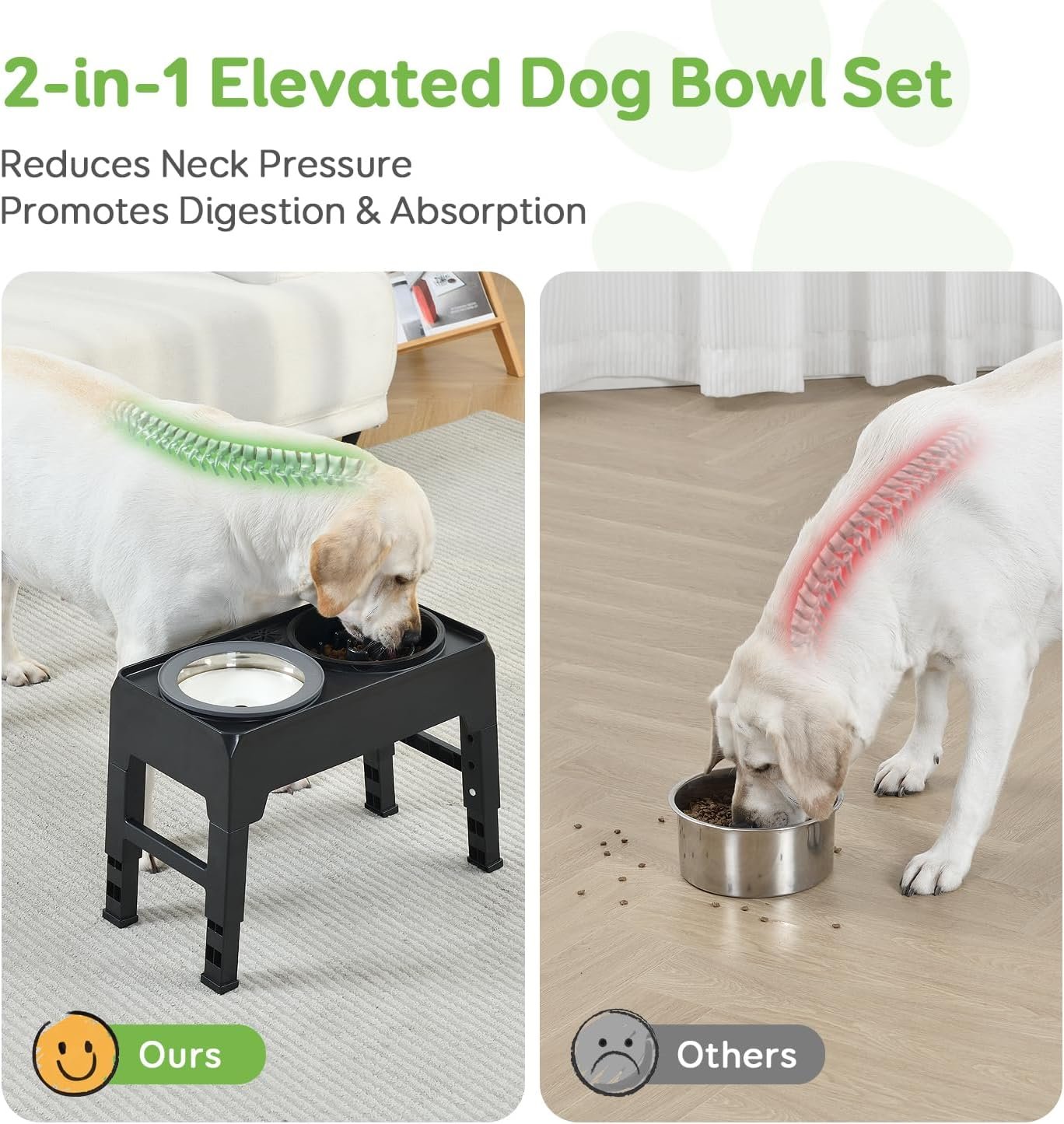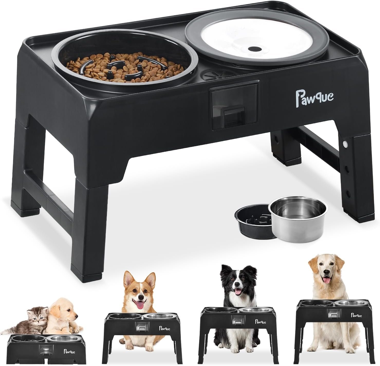 Perfect voor de groei van elke hond: 2-in-1 verhoogde hondenkom set bestaat uit een 35-oz langzame voederhondenkom en een 70 oz 304 roestvrijstalen niet-slip hondenwaterkom. Vier hoogtes beschikbaar – 4.72 “, 10.2”, 11.8 “, 13.3” – Catering voor verschillende hondengroottes. Zeg vaarwel tegen buigen en gezamenlijke spanning, vooral voor senior of artritische honden