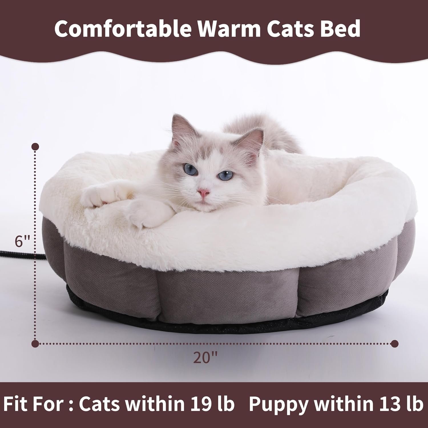 Verwarmd katten bed voor kat en puppy, huisdierenverwarmingskussen, verwarmd huisdierenbed met thermostaat, wasbaar binnengebruik Verwarmd katten bed, donzige warme katten verwarmd bed in de winter (20 inch)