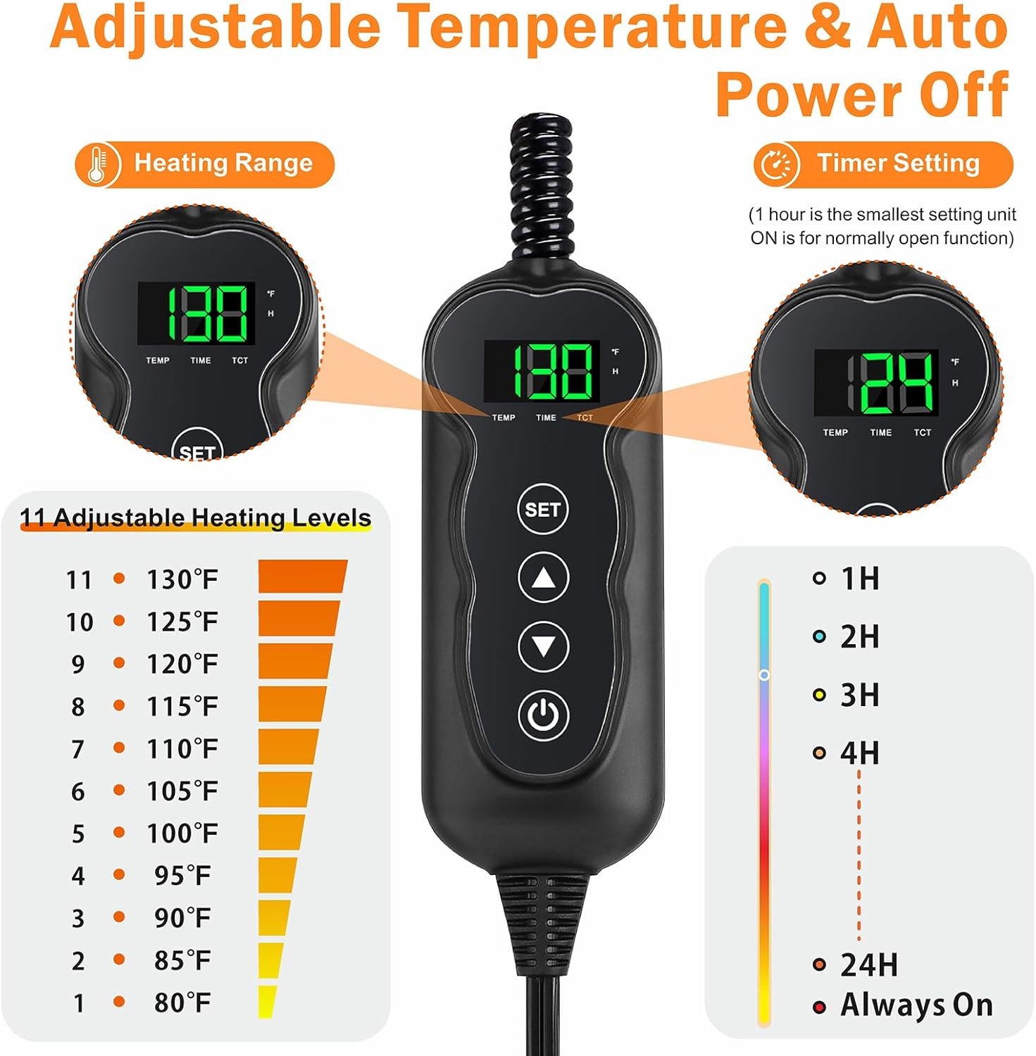 【11 Niveaus Temperatuur Verstelbaar】 Ons PET-verwarmingskussen kan de temperatuur gemakkelijk aanpassen met 11 temperatuurinstellingen (80-130 ℉/27-55 ℃). De verbeterde verwarmingsdraad is dichter, verwarmt sneller (binnen 5-10 minuten) en wordt gelijkmatig verwarmd. Ingebouwde dubbele temperatuursensor bewaakt de temperatuur nauwkeurig om oververhitting te voorkomen, laat uw huisdieren een warmer en veiliger winter.