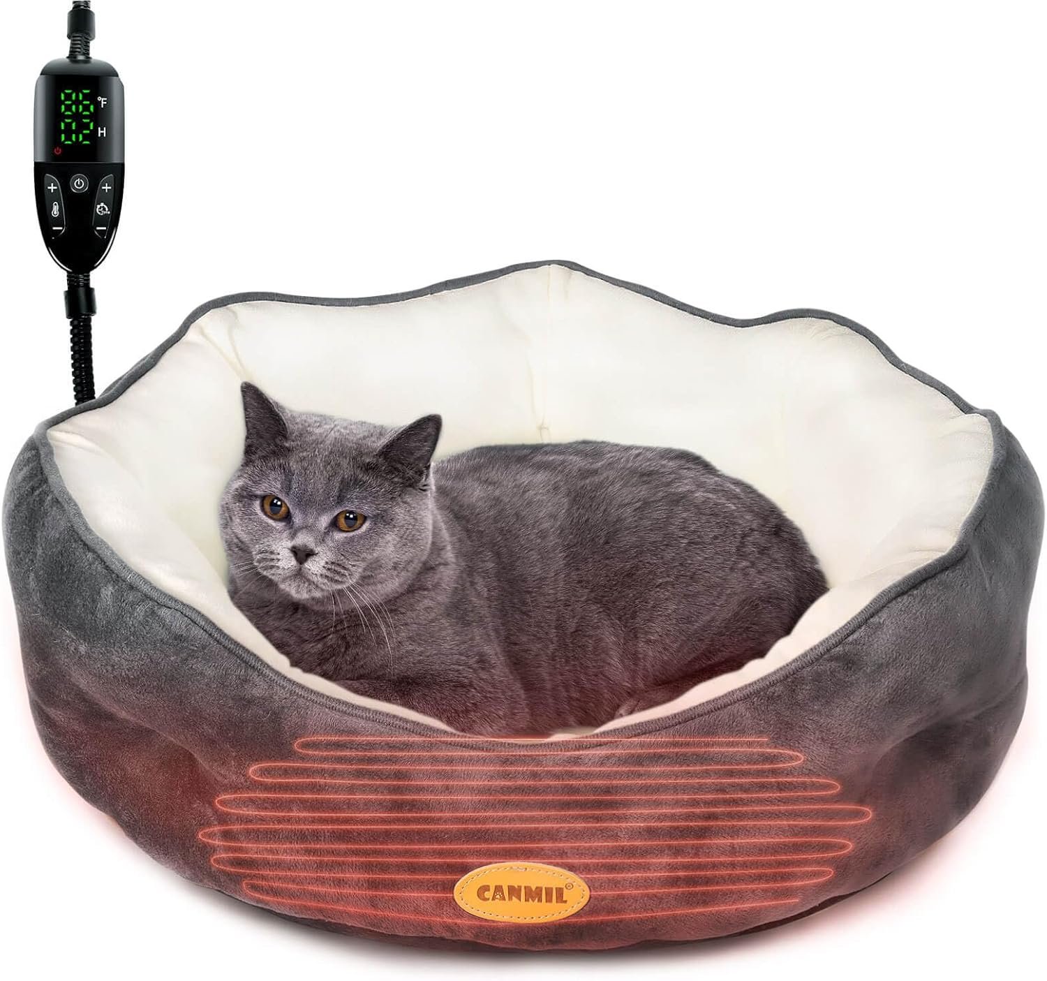 Verwarmd kattenbed binnenverwarmd huisdierbed voor binnenkatten en kleine honden, elektrisch ronde kattenverwarmd bed met verwarmingskussen, verstelbare temperatuur en timer, wasbaar kattenverwarmingsbed 20in (grijs)