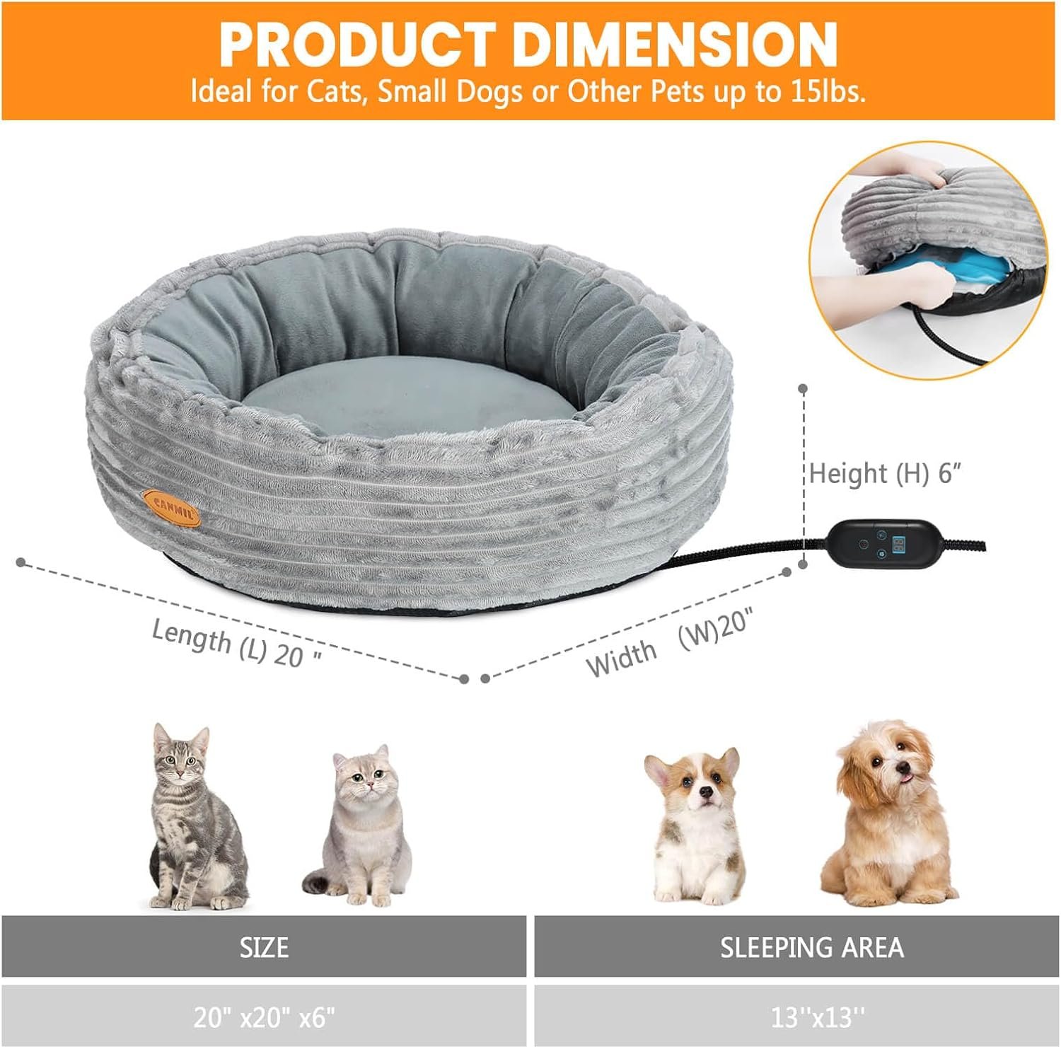 Perfecte maat voor kleine huisdieren: met een diameter van 20 inch is dit huisdierenbed de ideale maat voor katten, kleine honden en huisdieren tot 15 pond. De verwarmingsfunctie is vooral gunstig voor senior katten, kittens, artritische katten en dunne of haarloze katten.