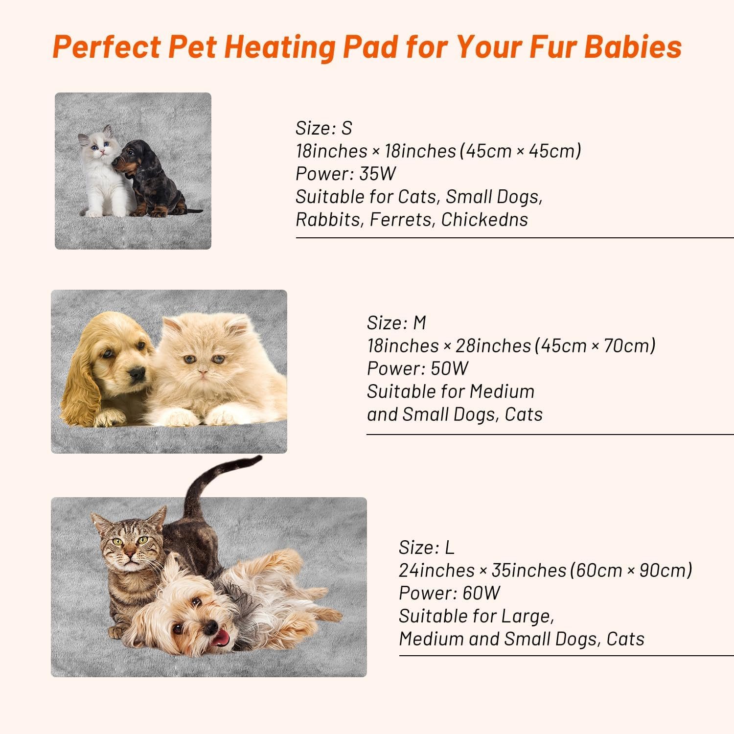 Beschikbaar in 3 -maat: de juiste maat van deze verwarmde mat voor huisdierenbed kan uw huisdier comfortabeler geven, controleer de maatgrafiek voordat u koopt. Als u een kwestie van het verwarmingskussen van huisdieren heeft, voel dan gemakkelijk om contact met ons op te nemen