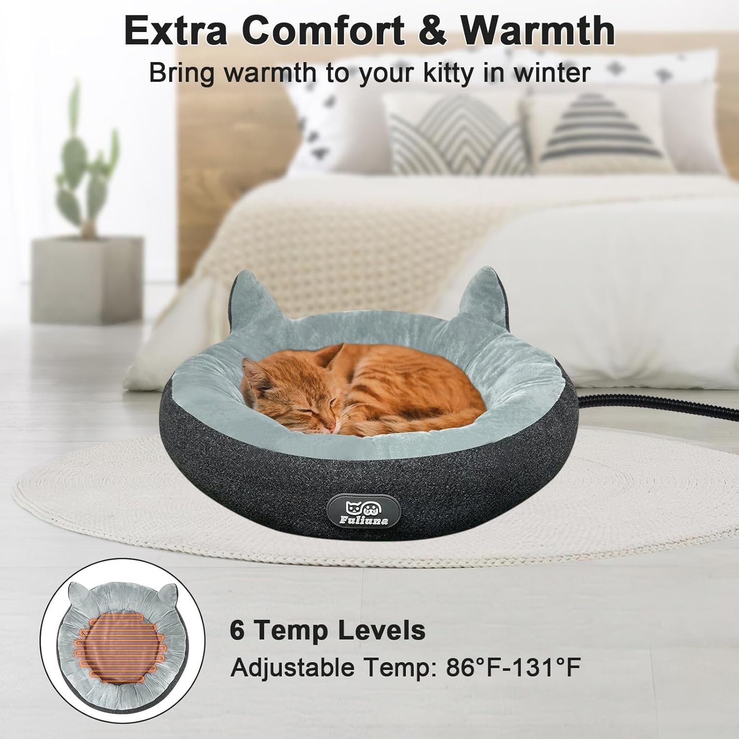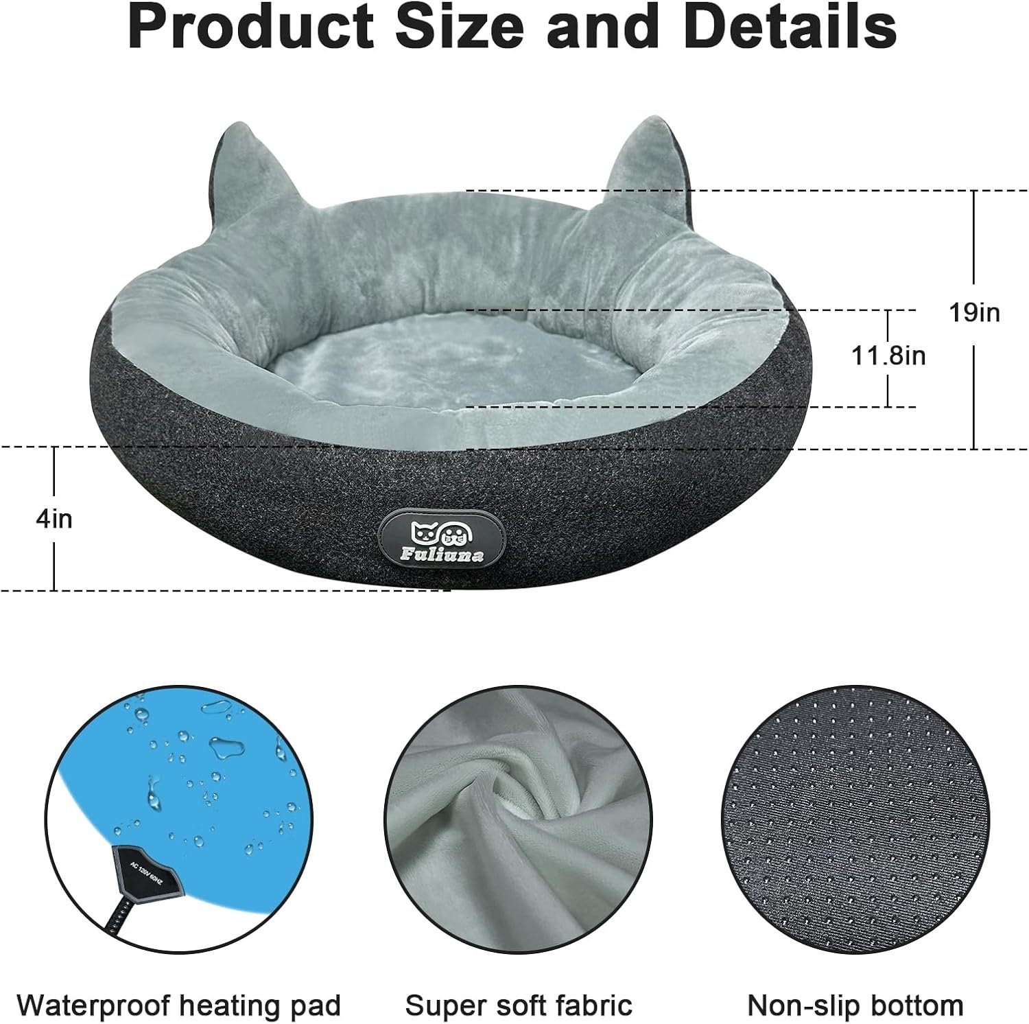 Verwarmd kattenbed voor binnenkatten, ronde binnenverwarmd huisdierbed met timer en temp verstelbaar, 19 “donut kat verwarmd bed gezellig elektrisch huisdierenverwarmingskussen met kauwbestendig koord voor kittenkat.