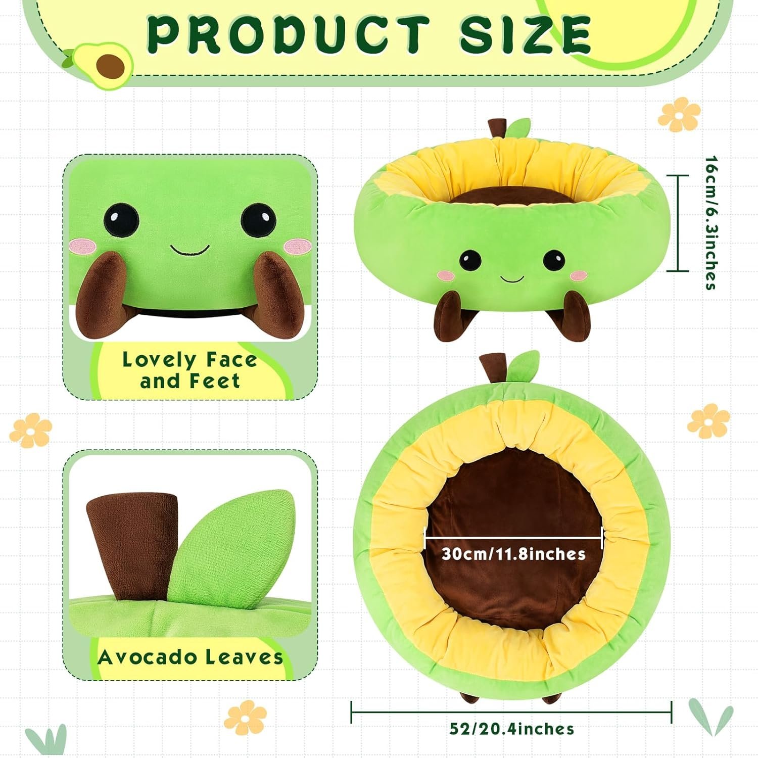 【Avocado pluche hondenbed】 Leuke avocado -afbeelding is aantrekkelijker voor huisdieren en voegt wat plezier toe om huisdieren in uw huis te houden. De verhoogde rand van het huisdierenbed kan worden gebruikt als kussen om katten en honden wat steun te geven voor hun nek en hoofden terwijl ze slapen, waardoor de slaap van uw huisdier comfortabeler en vrediger wordt.