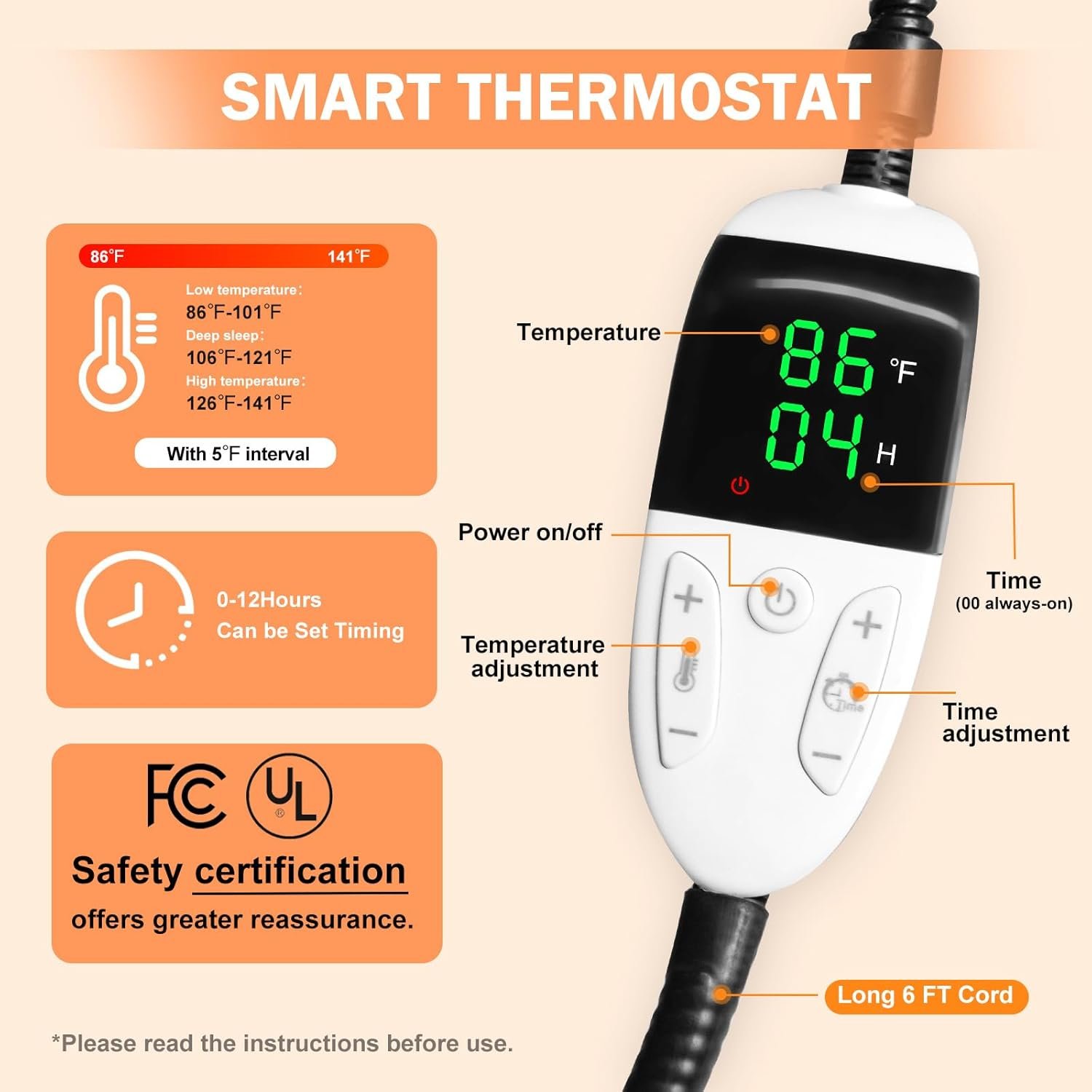 Intelligente constante temperatuur – Clayclay Verwarmd kattenhuis is uitgerust met een geavanceerde intelligente thermostaatcontroller, die de temperatuur binnen een breed bereik van 86 ° F tot 141 ° F kan aanpassen, evenals een timer -off -functie van 0 – 12 uur per uur en Een functie “0 uur” (zorg ervoor dat u de handleiding aandachtig leest voordat u gebruikt)