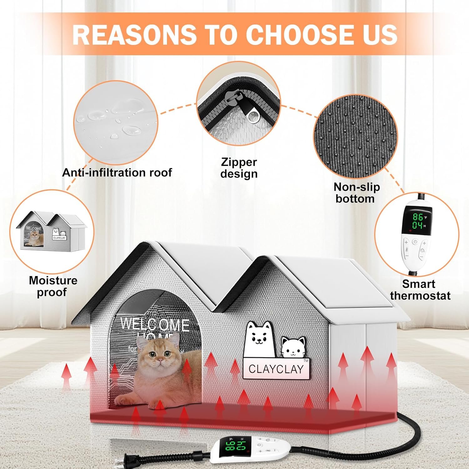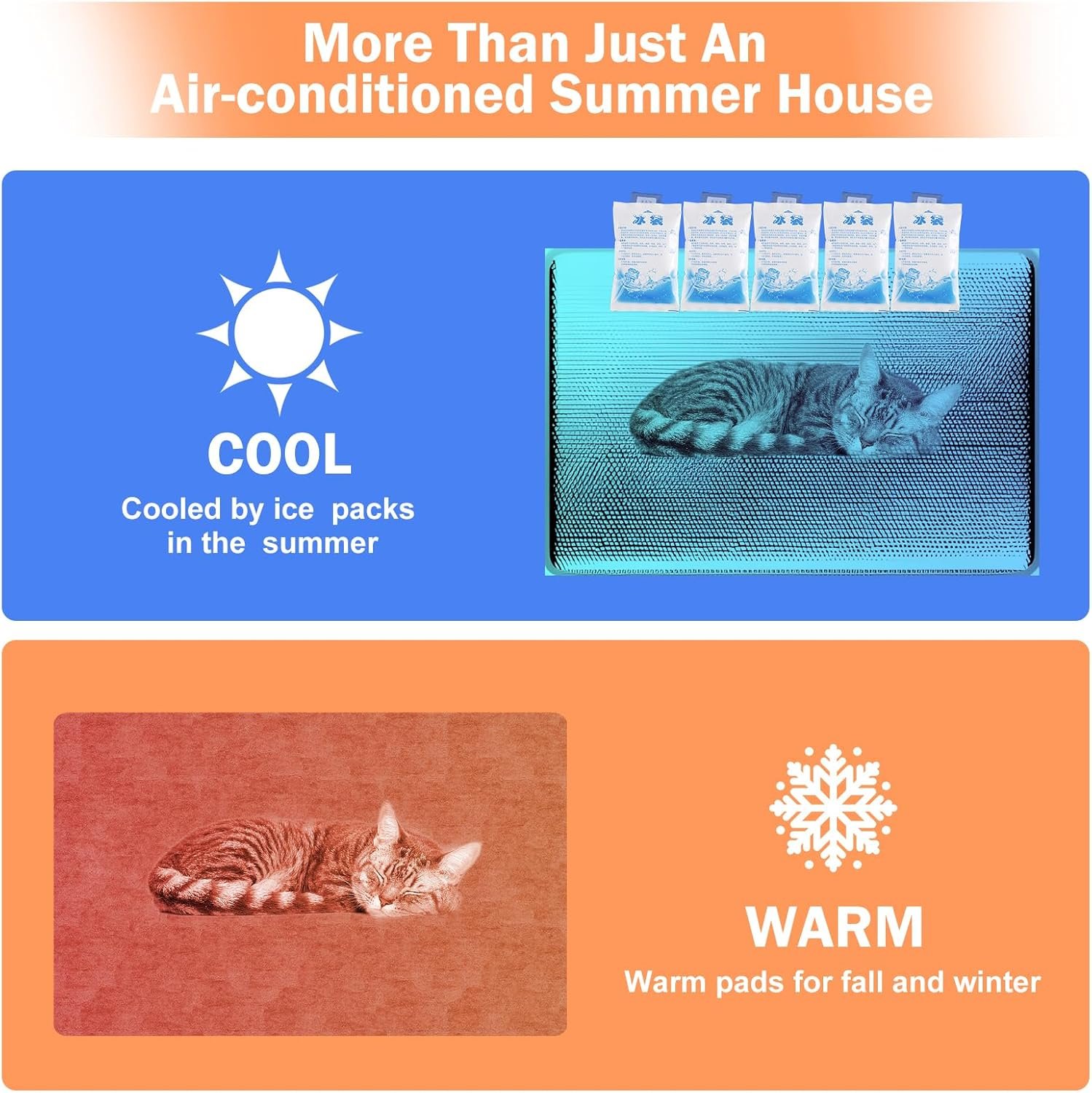 Gedurende alle seizoenen is het verwarmde kattenhuis van de Clayclay een huisdiernest dat in alle seizoenen kan worden gebruikt. Met het speciale warmtebehoudsmateriaal is het uitgerust met een verwarmingskussen dat uw huisdier in de koude winter warmte kan brengen; En in de hete zomer, stop je de gratis ijstas in het kattenhuis en het kattenhuis zal transformeren in een koel ‘airconditioned huis’ om je kat uit de buurt te houden van de zomerhitte