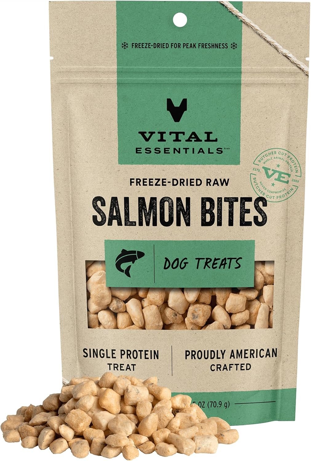 Vital Essentials bevriezen gedroogde rauwe zalmbeten hondentraktaties, 2,5 oz | Premium -kwaliteit hoge eiwittraining traktaties | Graanvrij, glutenvrij, vulvrij