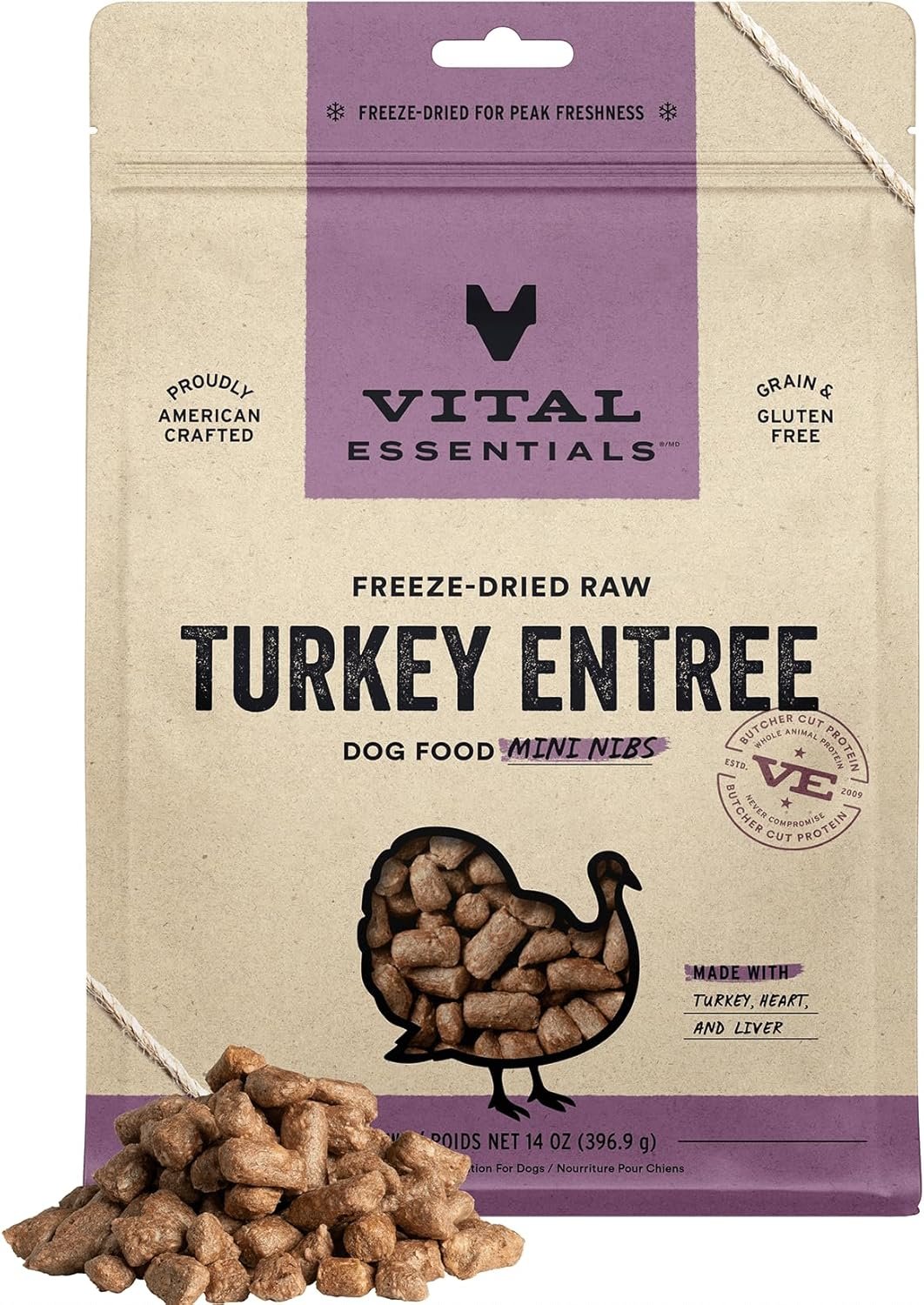 Vital Essentials® gevriesdroogd rauw kalkoentree & mixer hondenvoer knapperige mini-nibs, 14 oz