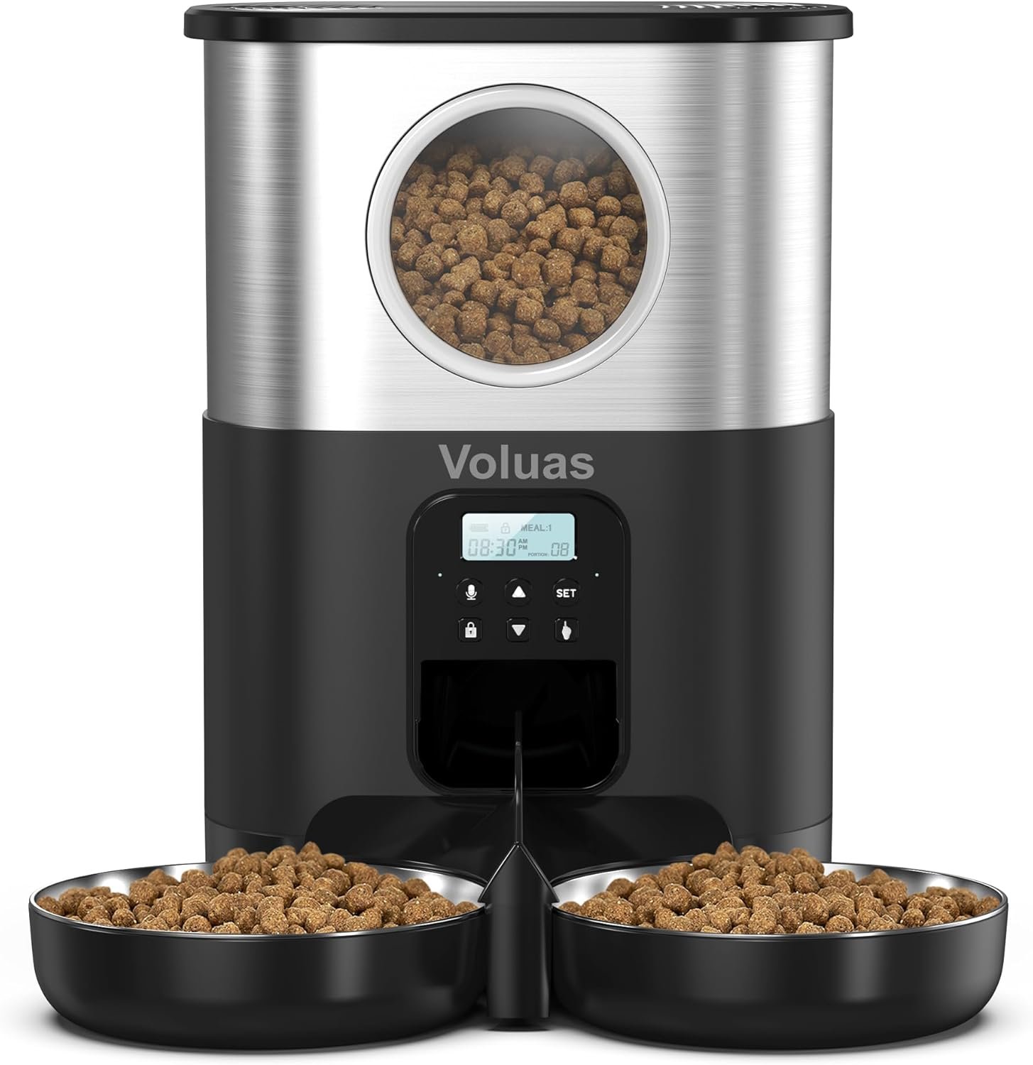 Voluas Automatische kattenvoeders voor twee katten, huisdiervoeder voor katten en honden getimede kattenvoeder Pet Dry Food Dispenser, zwart