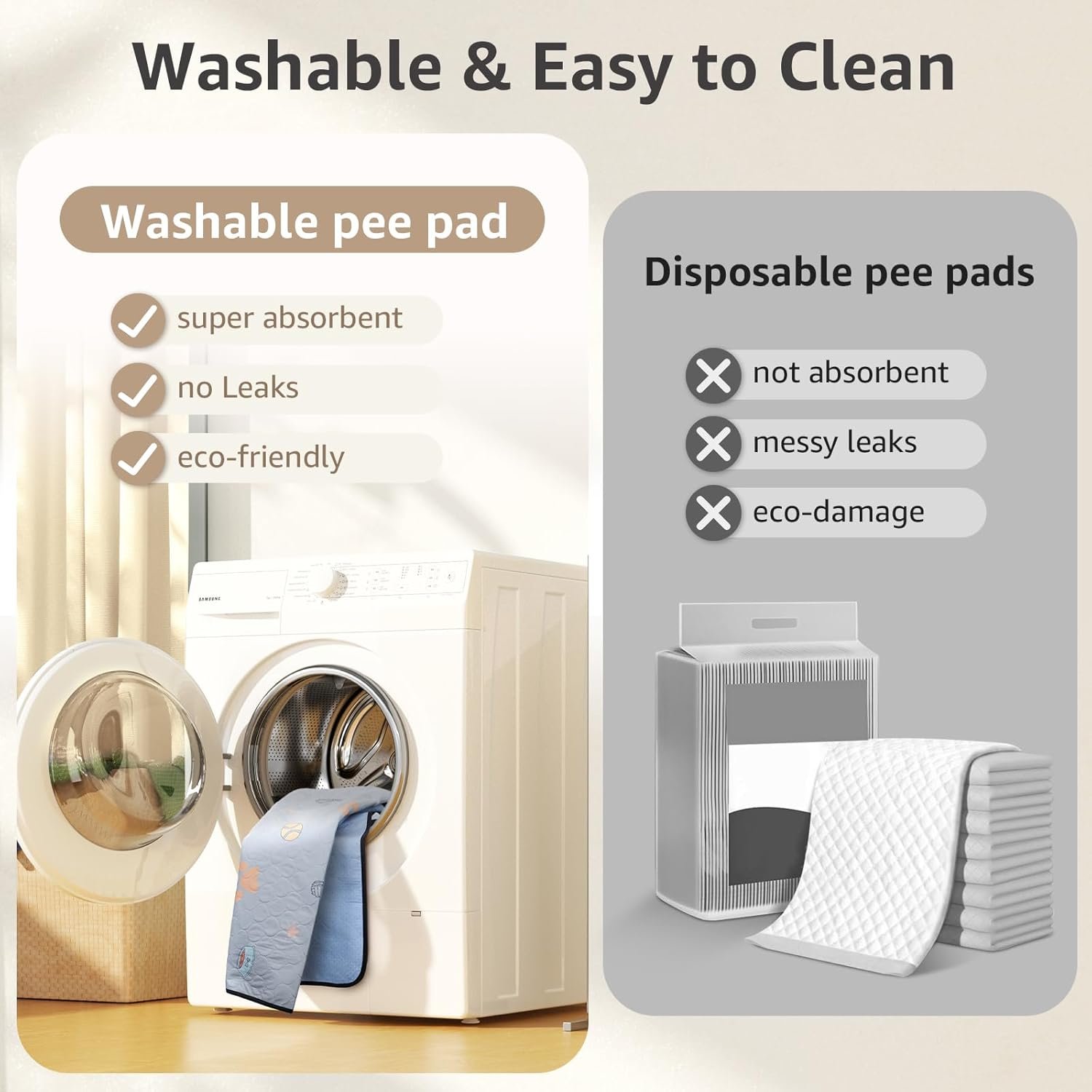 Eenvoudig te reinigen en herbruikbaar: na het gebruik van het puppykussen kunt u het eenvoudig in de wasmachine gooien voor een snelle en grondige reiniging. Ons waterdichte hondenkleed is duurzaam en niet gemakkelijk vervormd of gekrompen. In vergelijking met wegwerpopties zijn onze plas pads een milieuvriendelijke keuze die u tijd en geld bespaart.