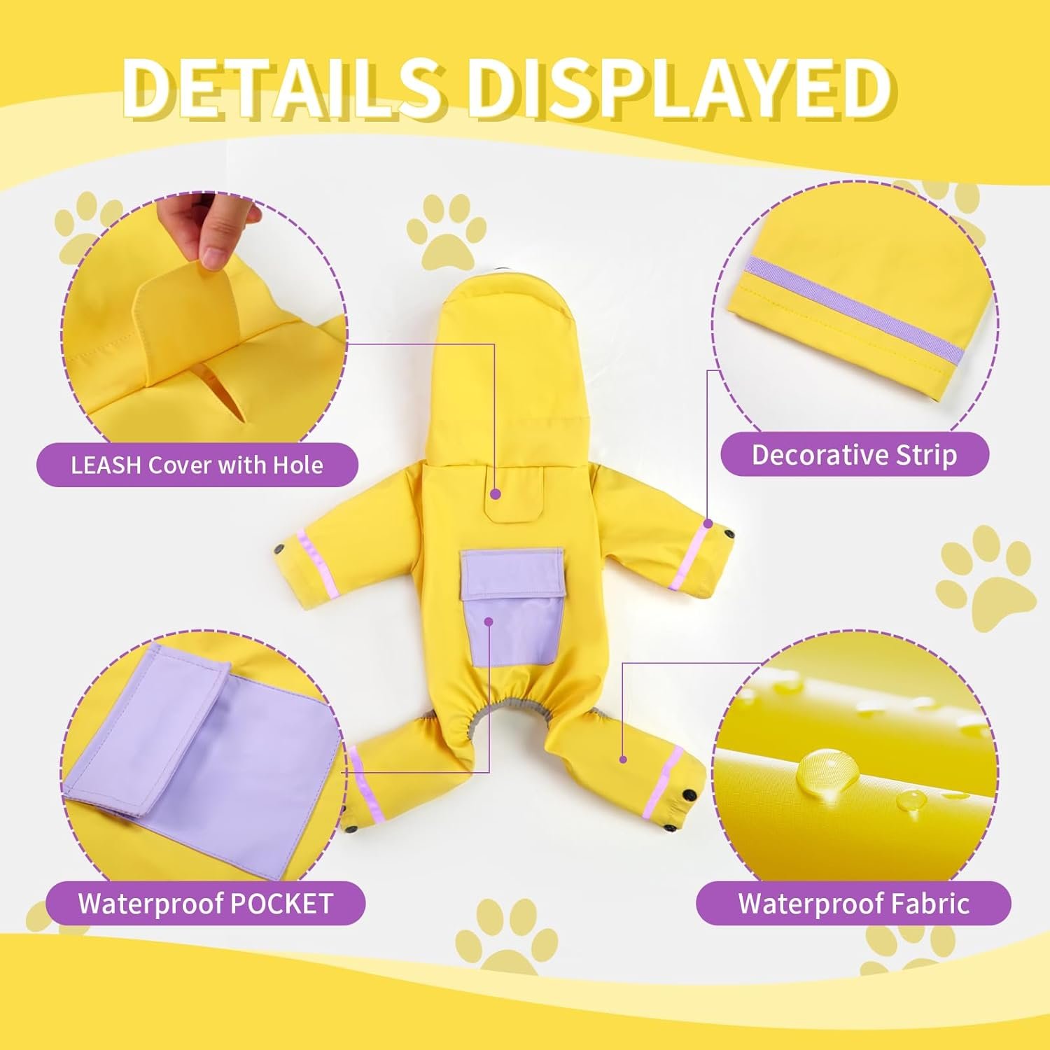 Verborgen riemgat: het gatontwerp aan de achterkant van de regenkleding van het huisdier maakt het gemakkelijk om een riem of veiligheidsgordel te bevestigen om extra controle voor uw huisdier te bieden.