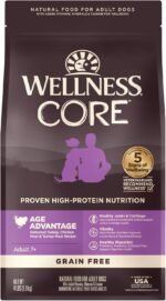 Wellness Core graanvrije senior droog hondenvoer, gemaakt in de VS met natuurlijke ingrediënten, geen vlees bijproduct, vulstoffen, kunstmatige smaken of conserveermiddelen (4-pond zak, kalkoen)